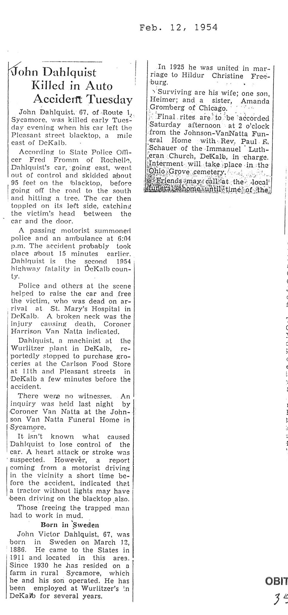 DOB Febraury 12, 1878 in Sweden