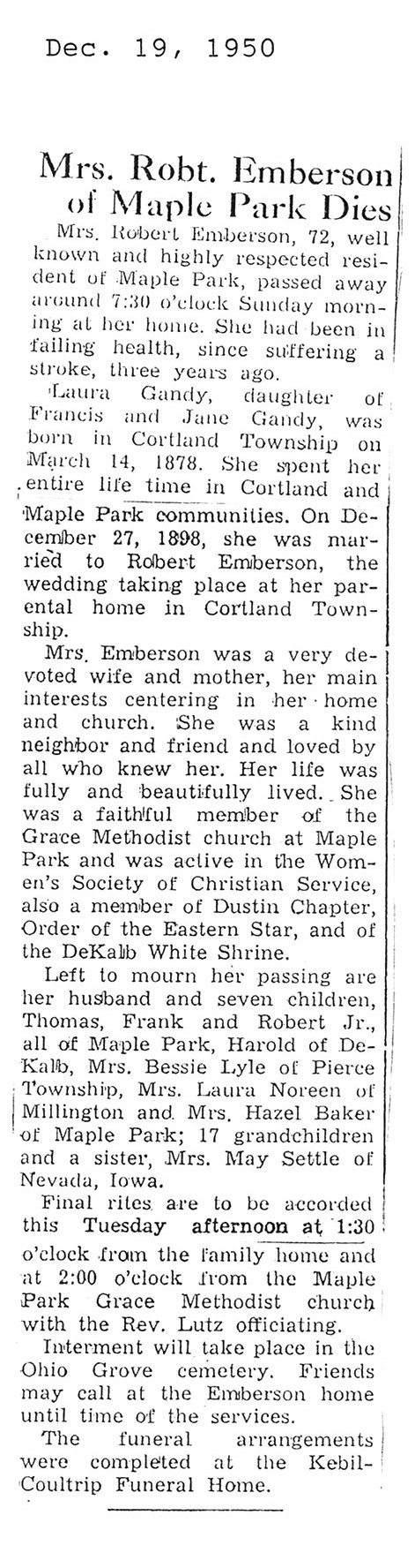 Home » Viewing all obituaries located at "Ohio Grove Cemetery" (530 matches)