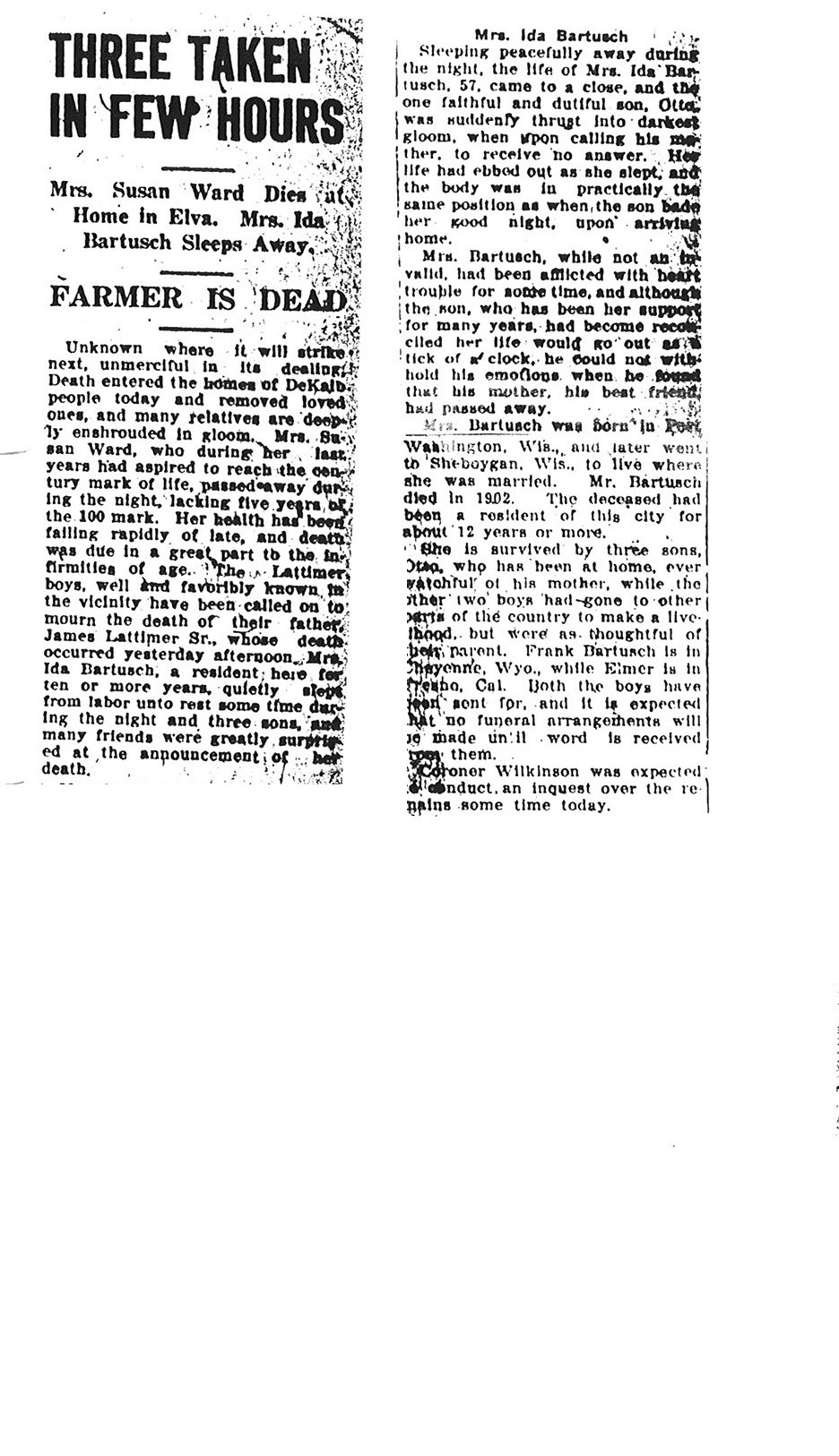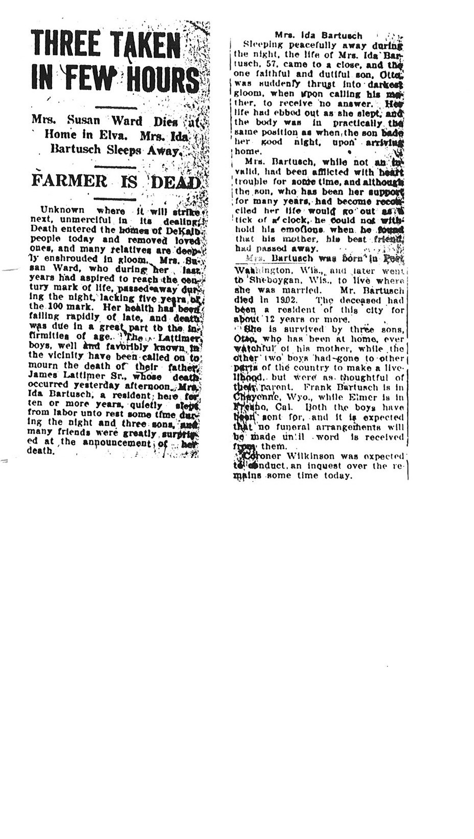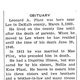 This Obit is from the collection of Louise Rowan Witherhall. It does not give a date of his passing but does state in the article that he had just finished doing the tax assessments for 1936. Depending on when they are done, he passed away either in 1935 or 1936.