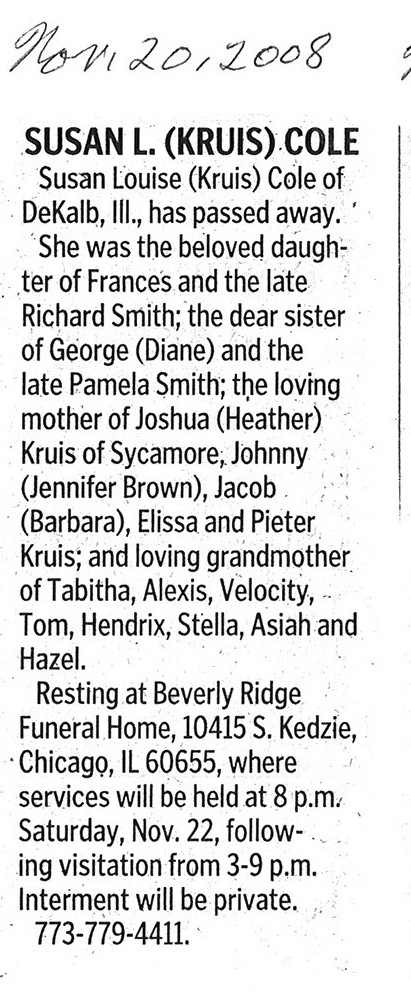 There is no date of birth or age in the obituary also there is no date of when she passed away just the date on the paper as being from 20081120