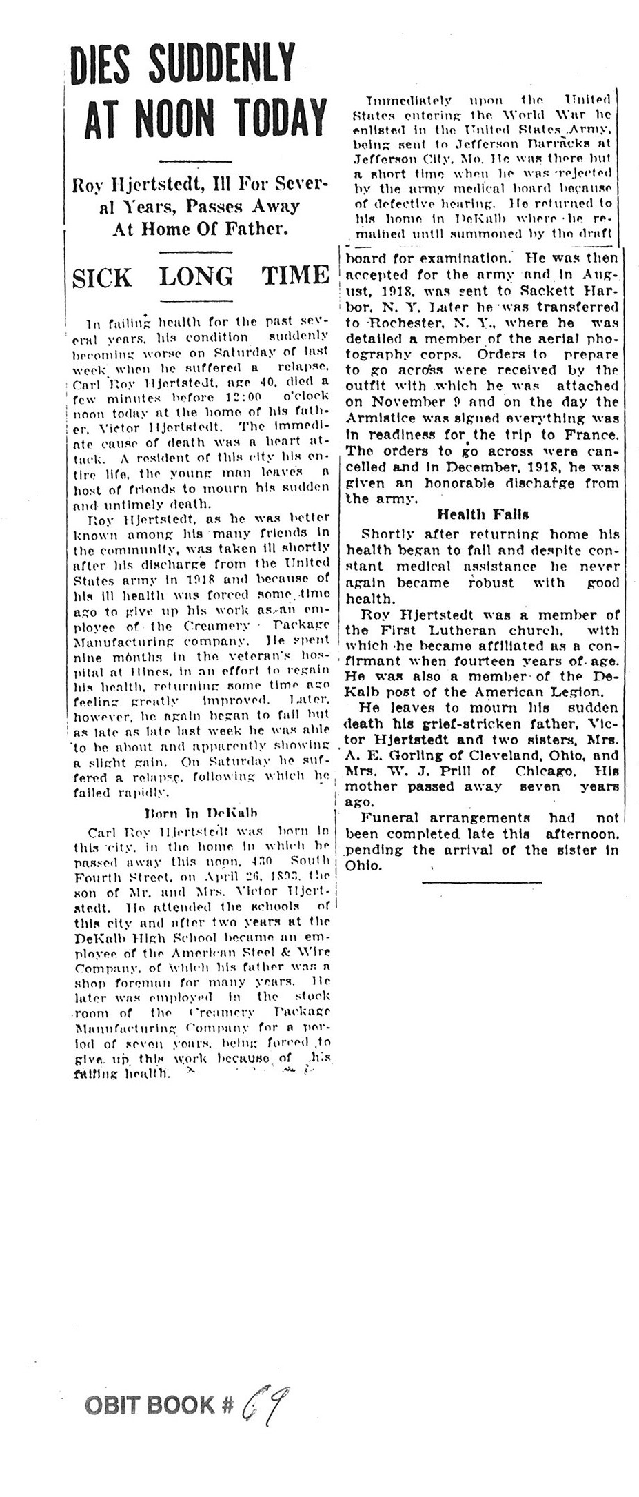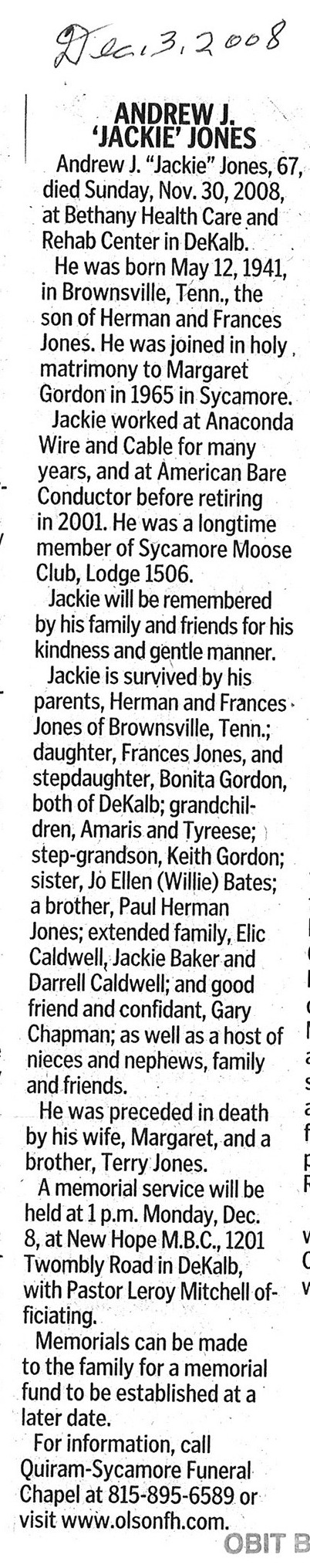 There is no age or date of passing in this obit. This states that he was a resident of DeKalb County for 60 plus years.