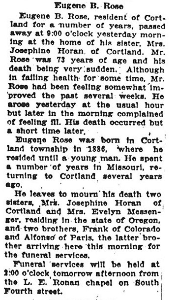 This is from the collection of Louise Rowan Whitherall 2007. The obit does not give his age or the date when he passed away.