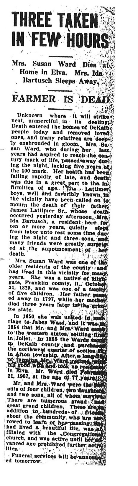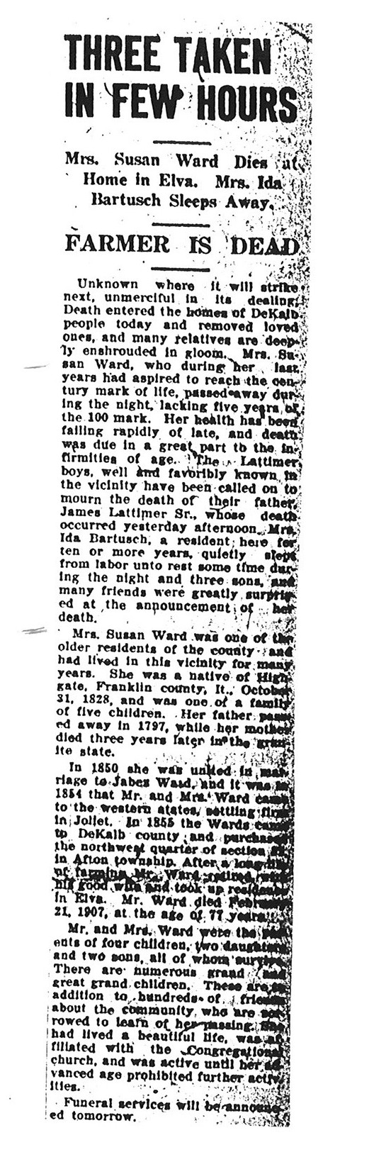 This is from the Collection of Louise Rowan Whitherall 2007. There is no date of birth or date of passing and no age in the article.