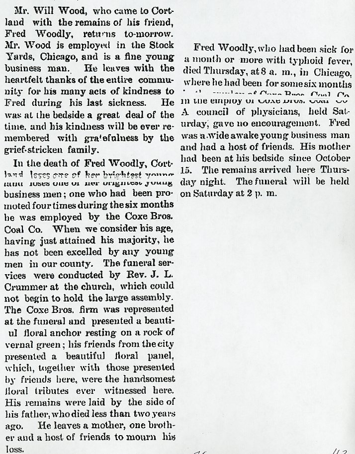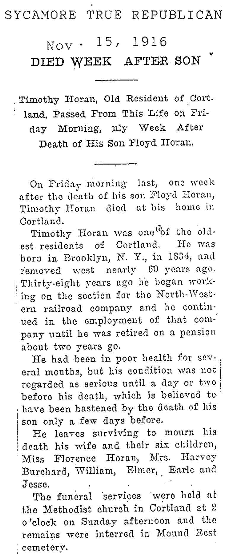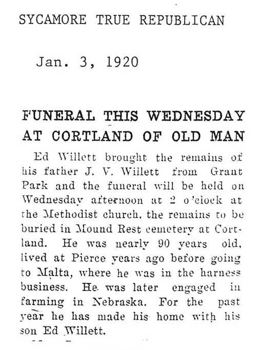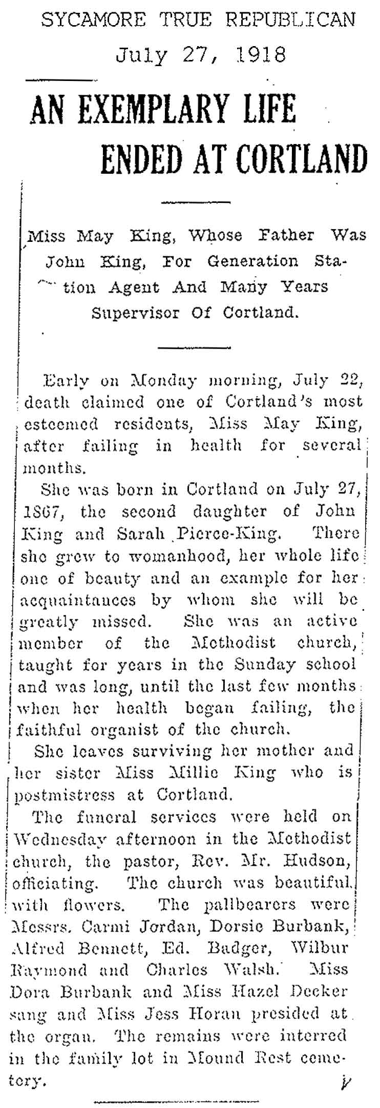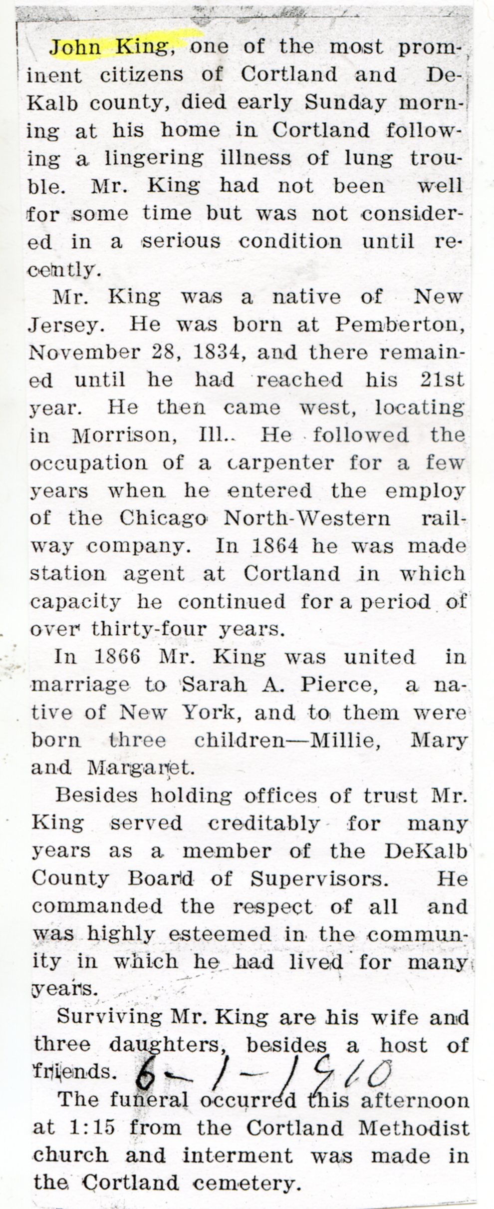 station agent at Cortland for Chicago Northwestern Railroad Company for 34 years