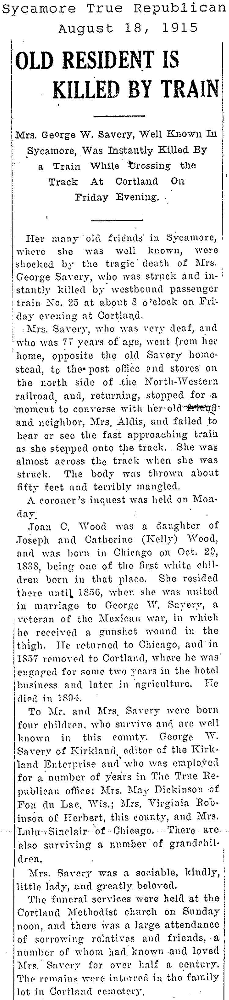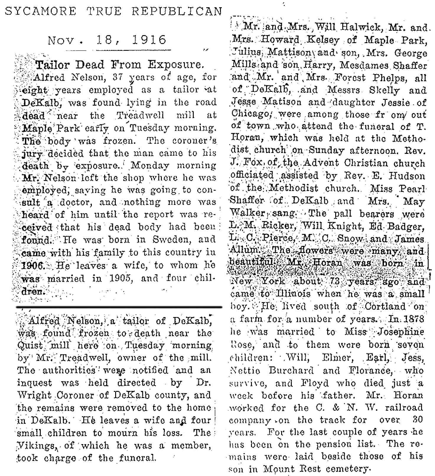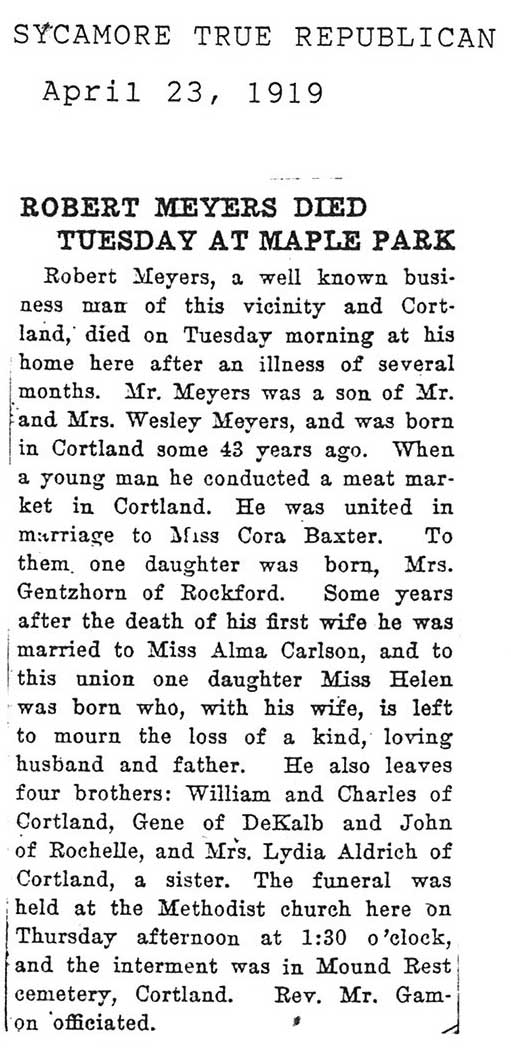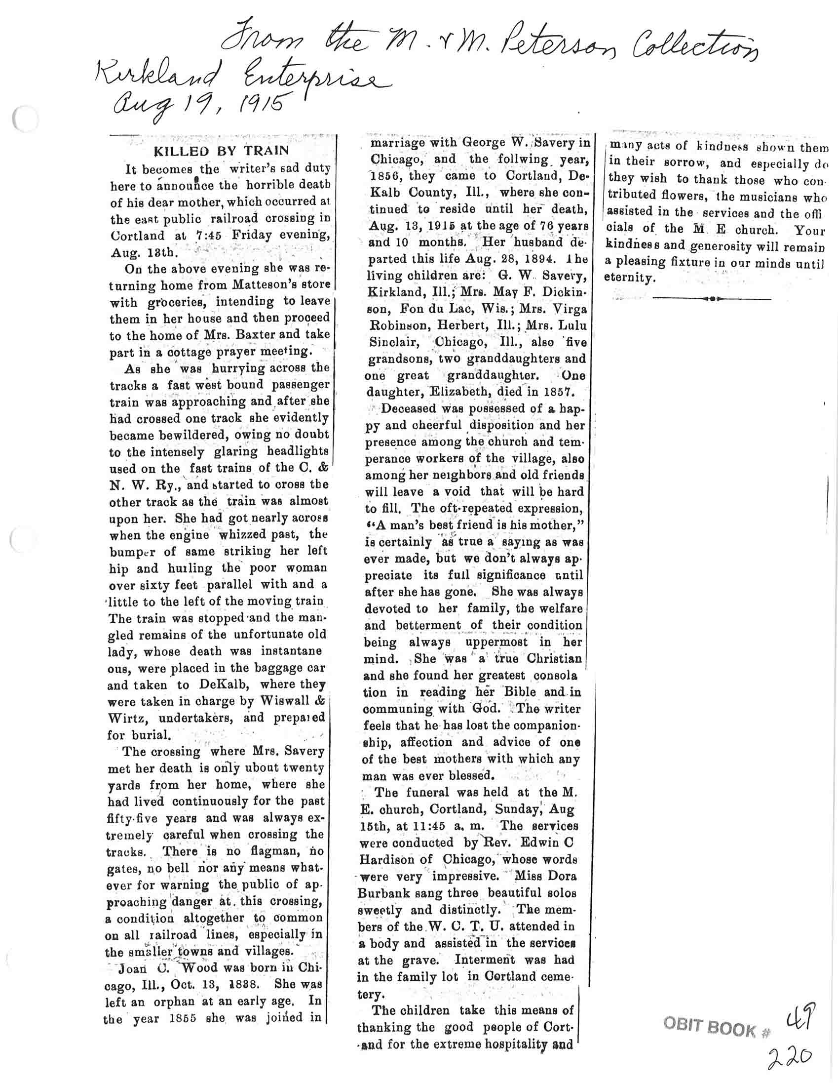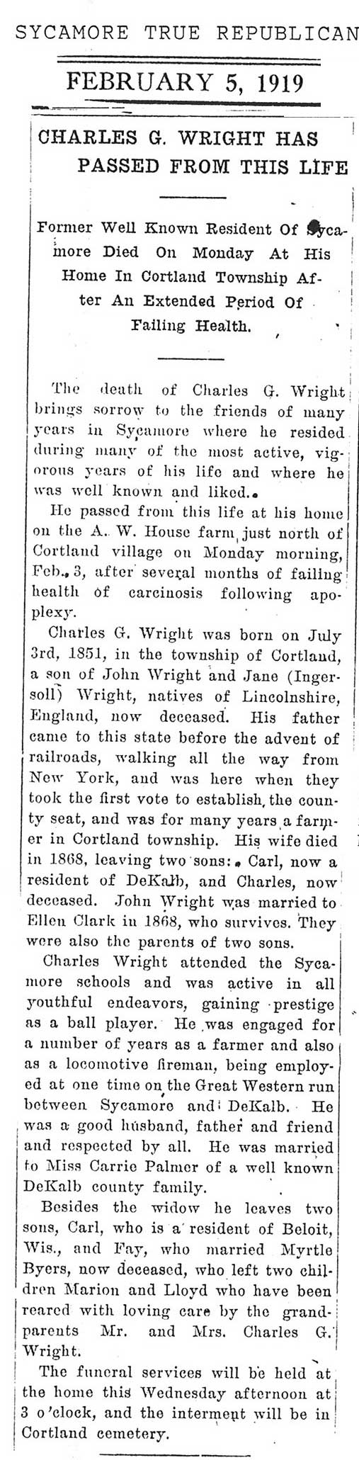 station agent at Cortland for Chicago Northwestern Railroad Company for 34 years