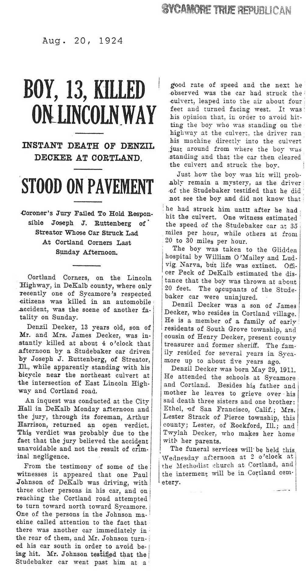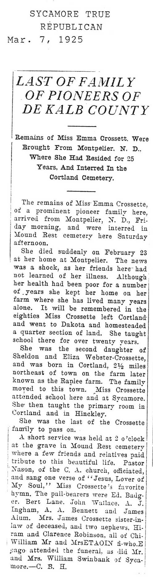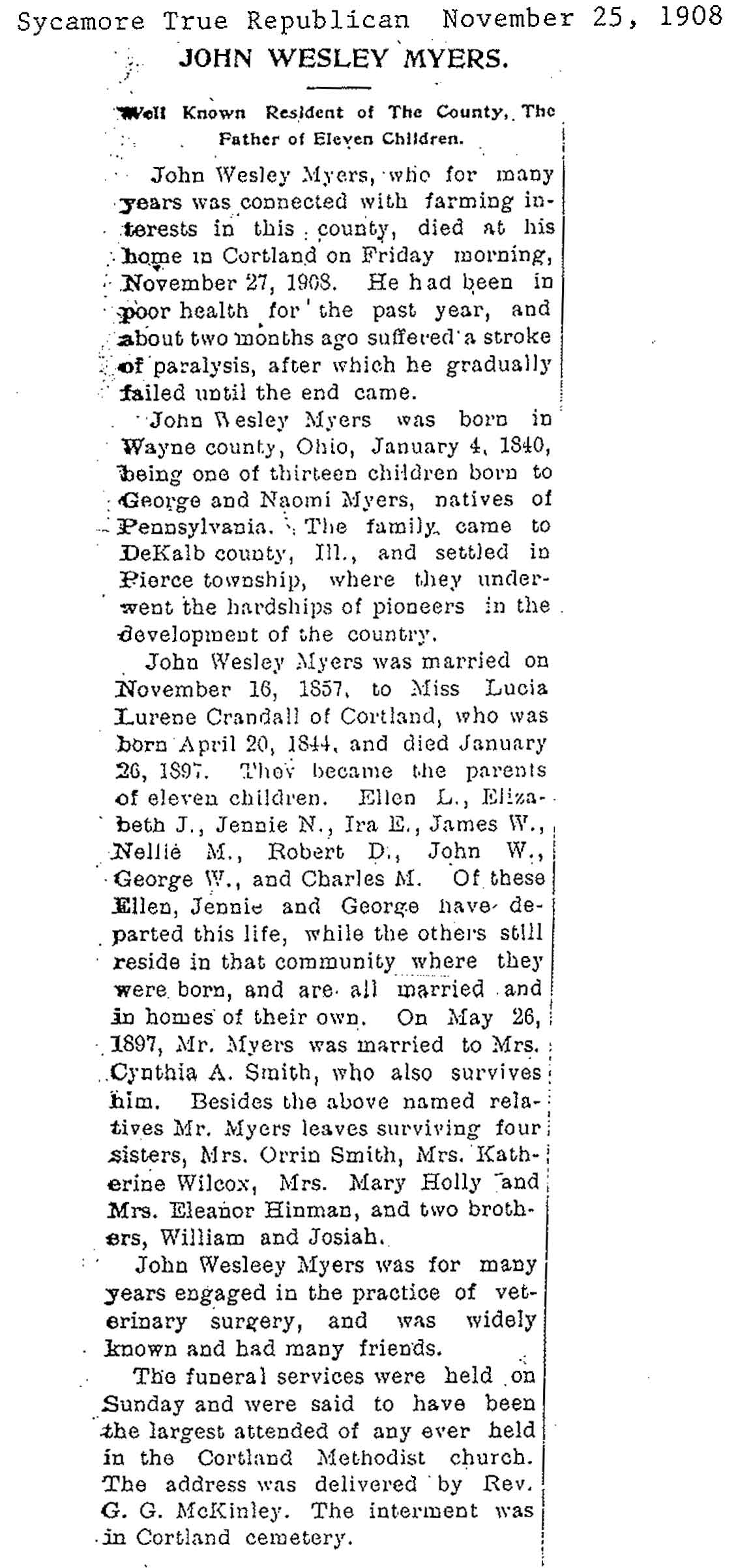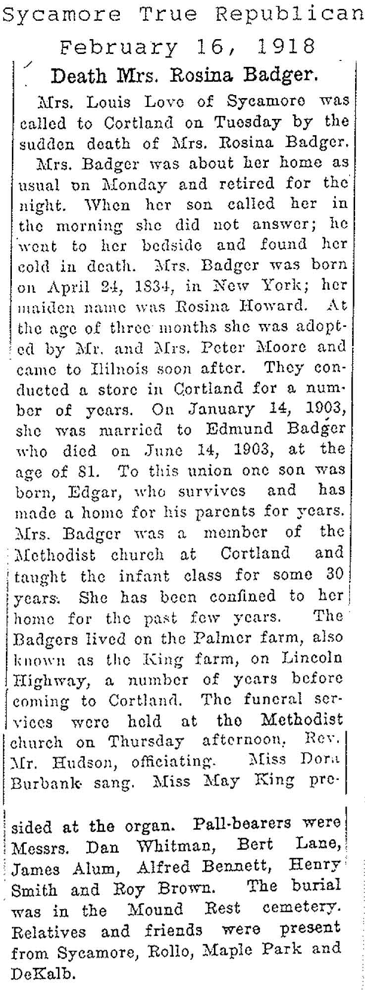 station agent at Cortland for Chicago Northwestern Railroad Company for 34 years