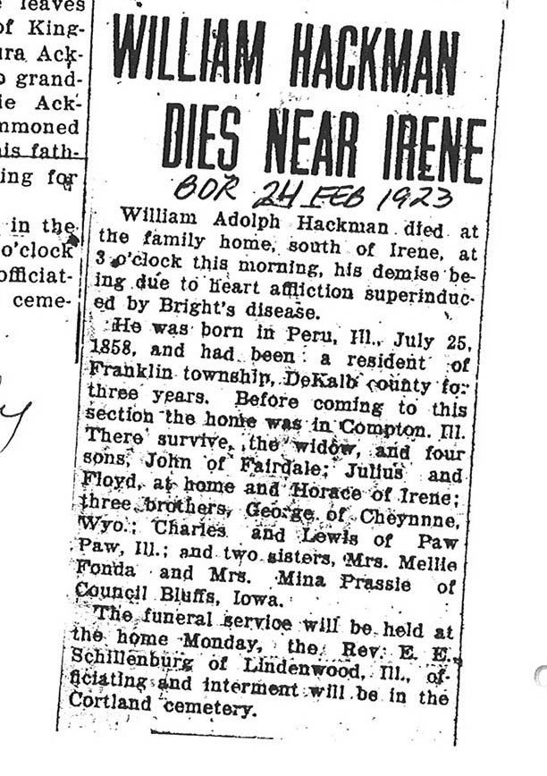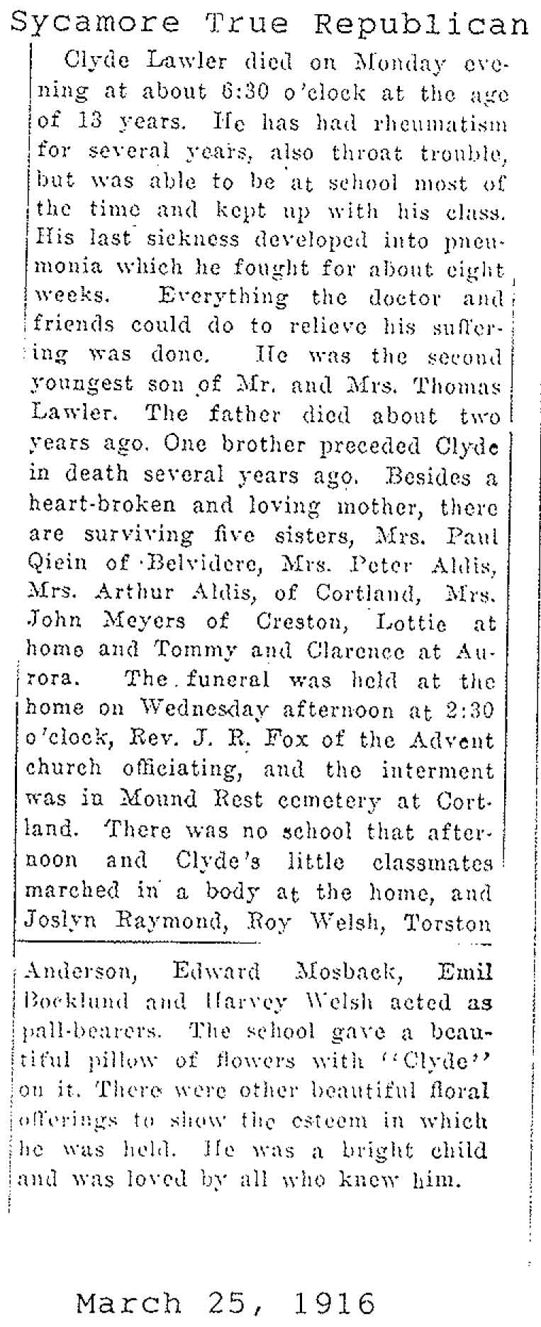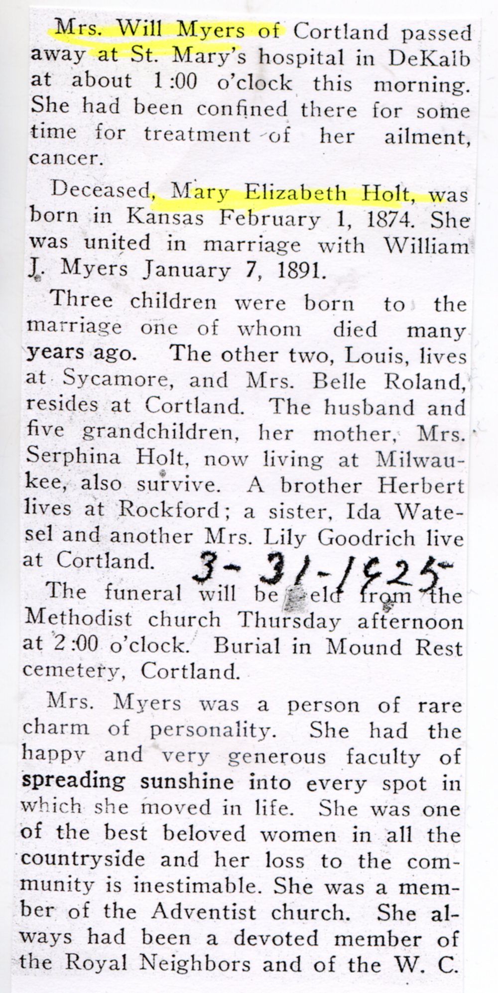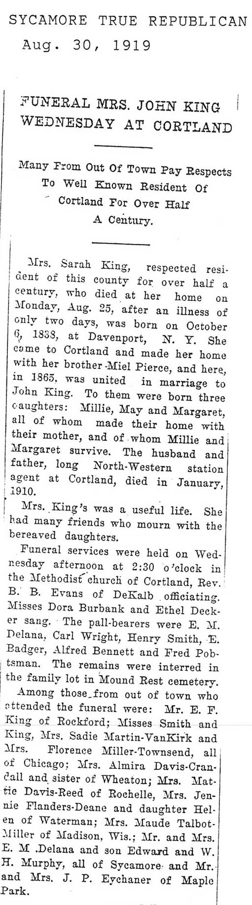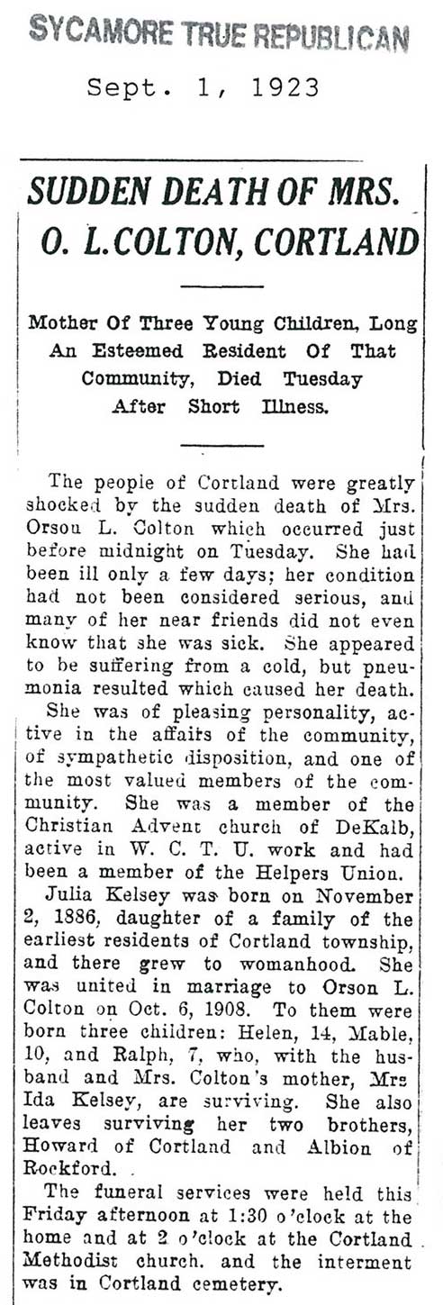 station agent at Cortland for Chicago Northwestern Railroad Company for 34 years