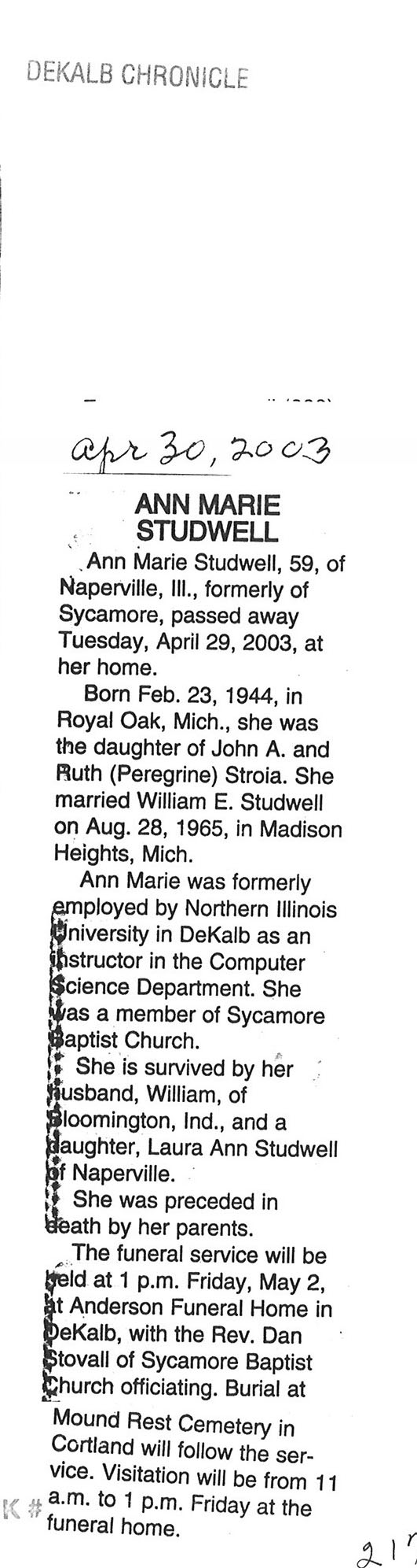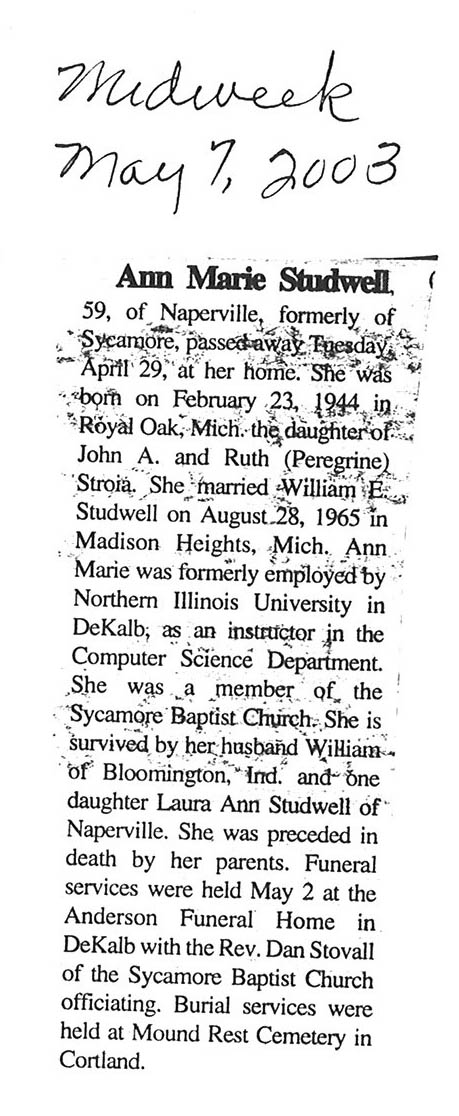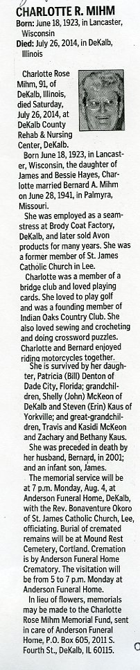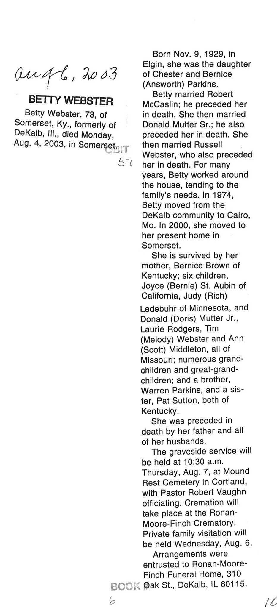 Maiden name - Parkins 1st husband - Robert McCaslin 2nd husband Donald Mutter, Sr.