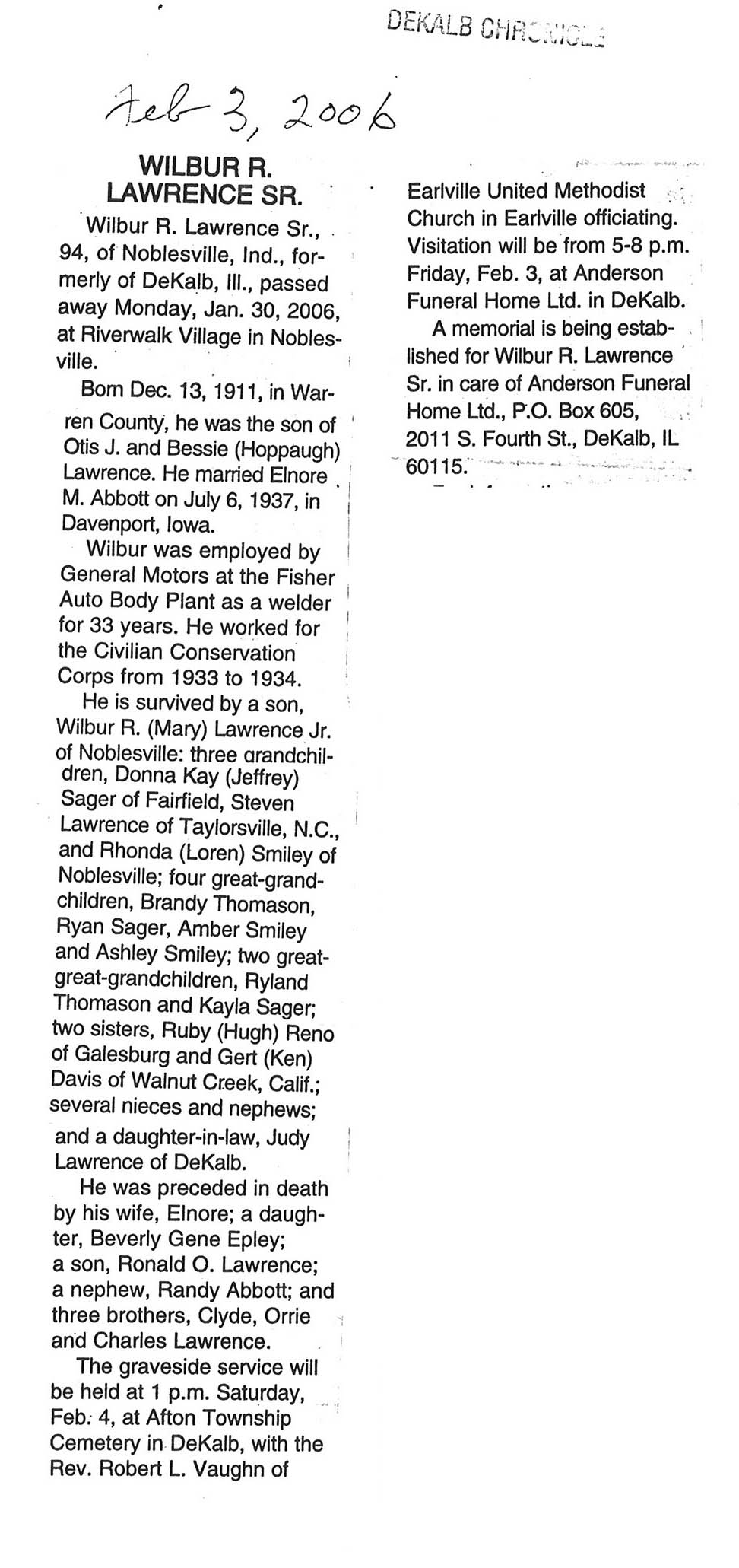 DOB February 3, 1920