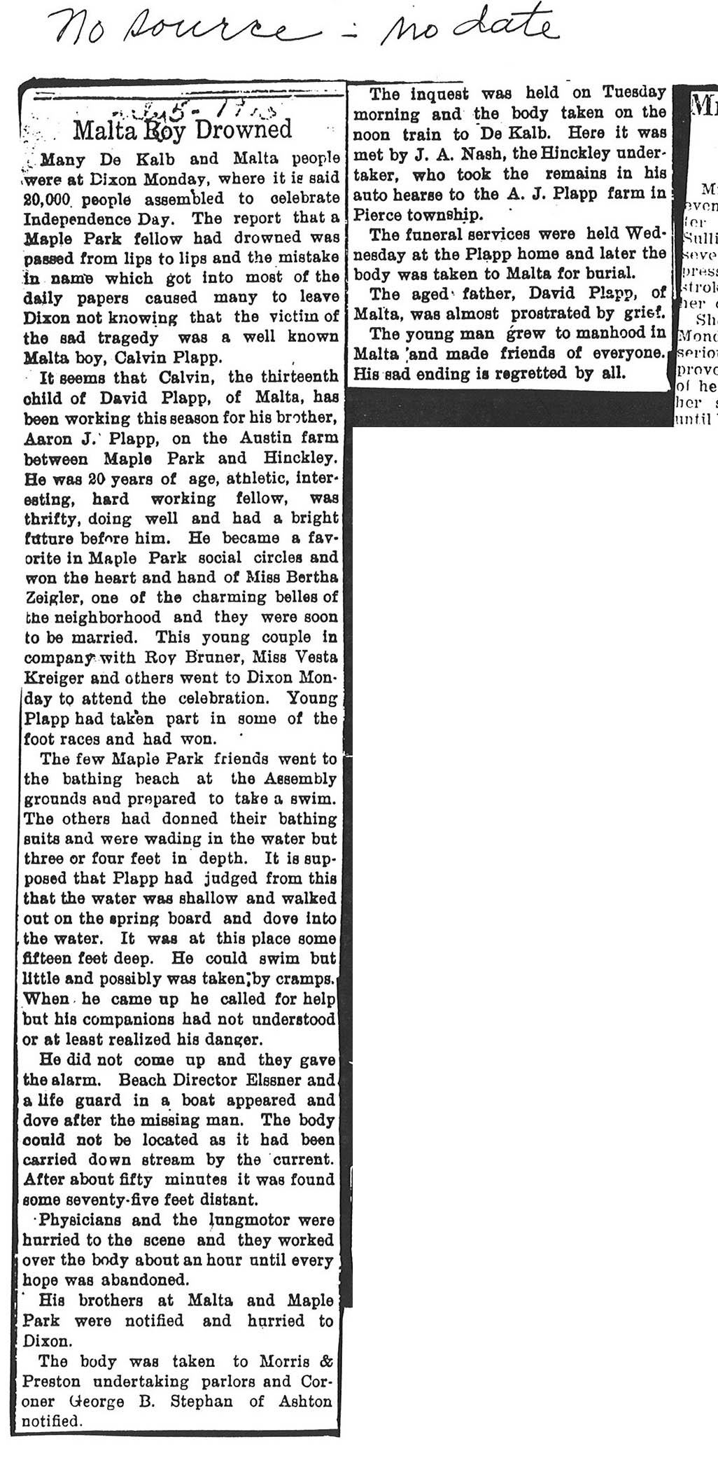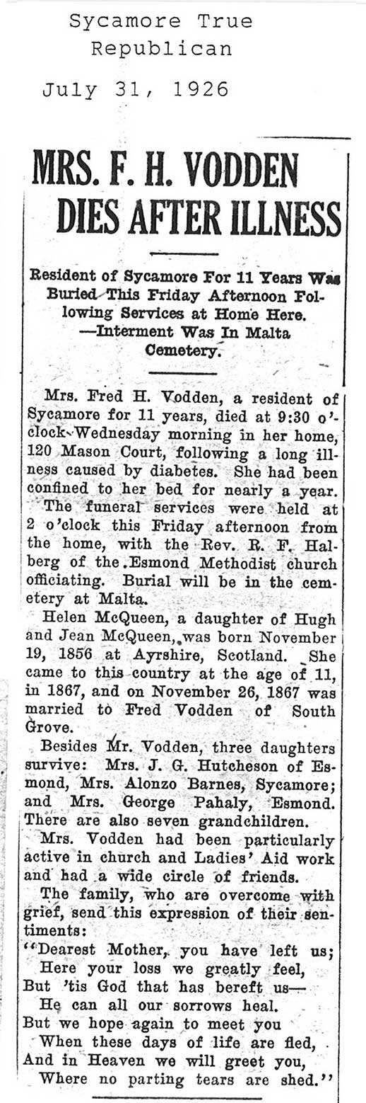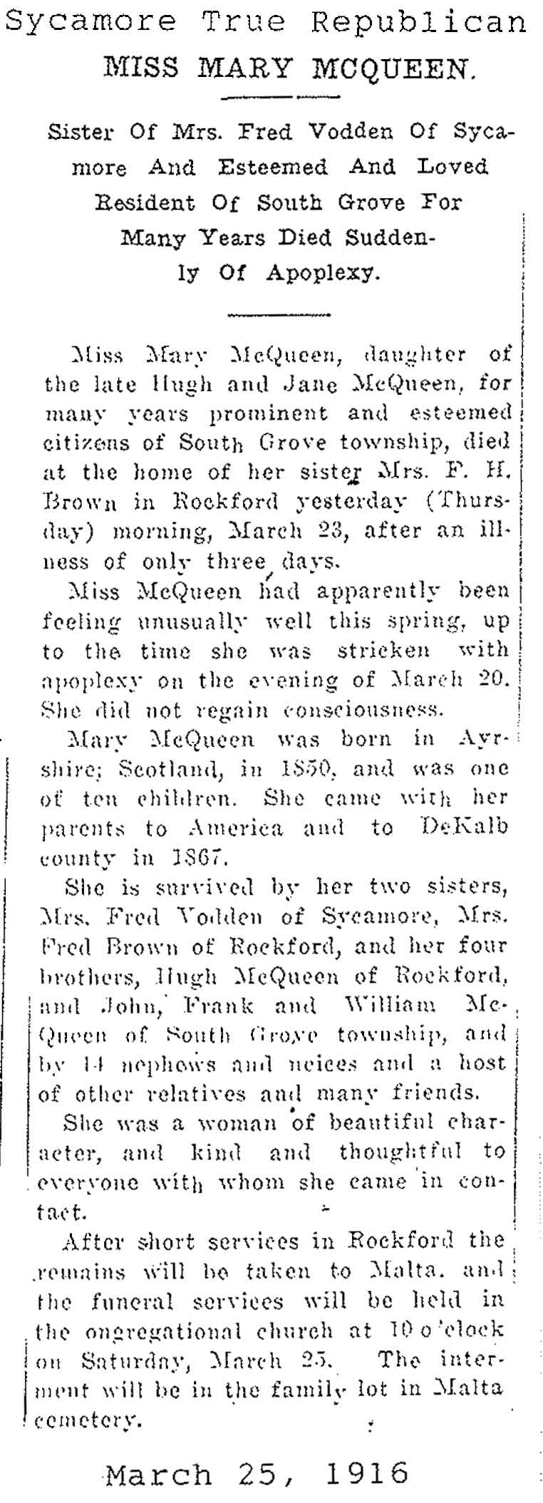 Note: obit has death year as 1923 cemetery listing has year as 1929