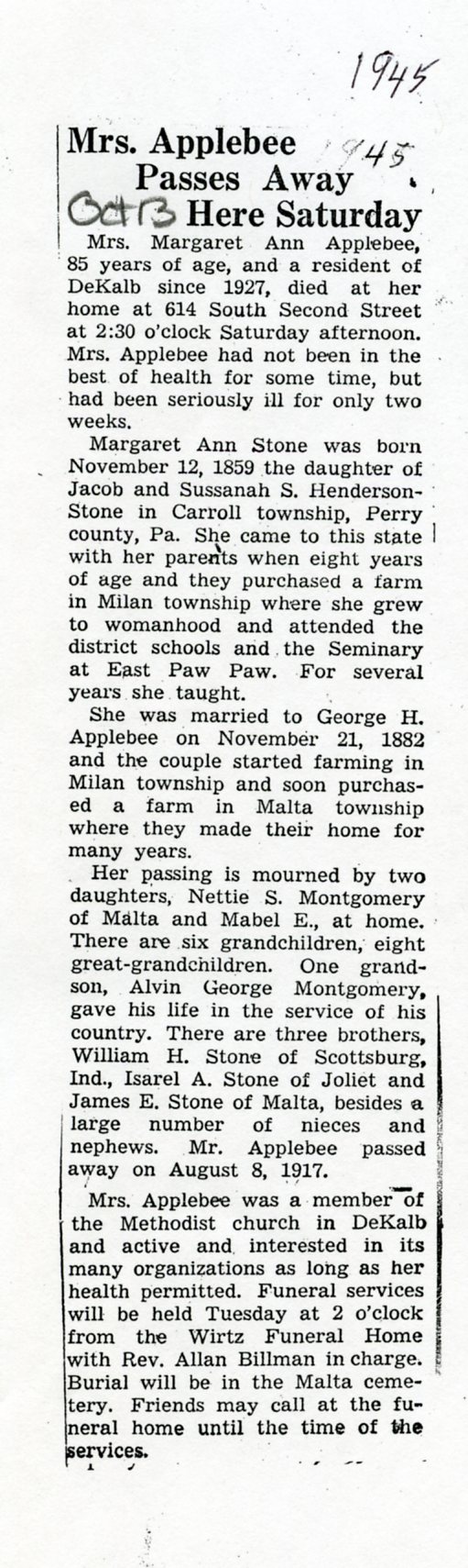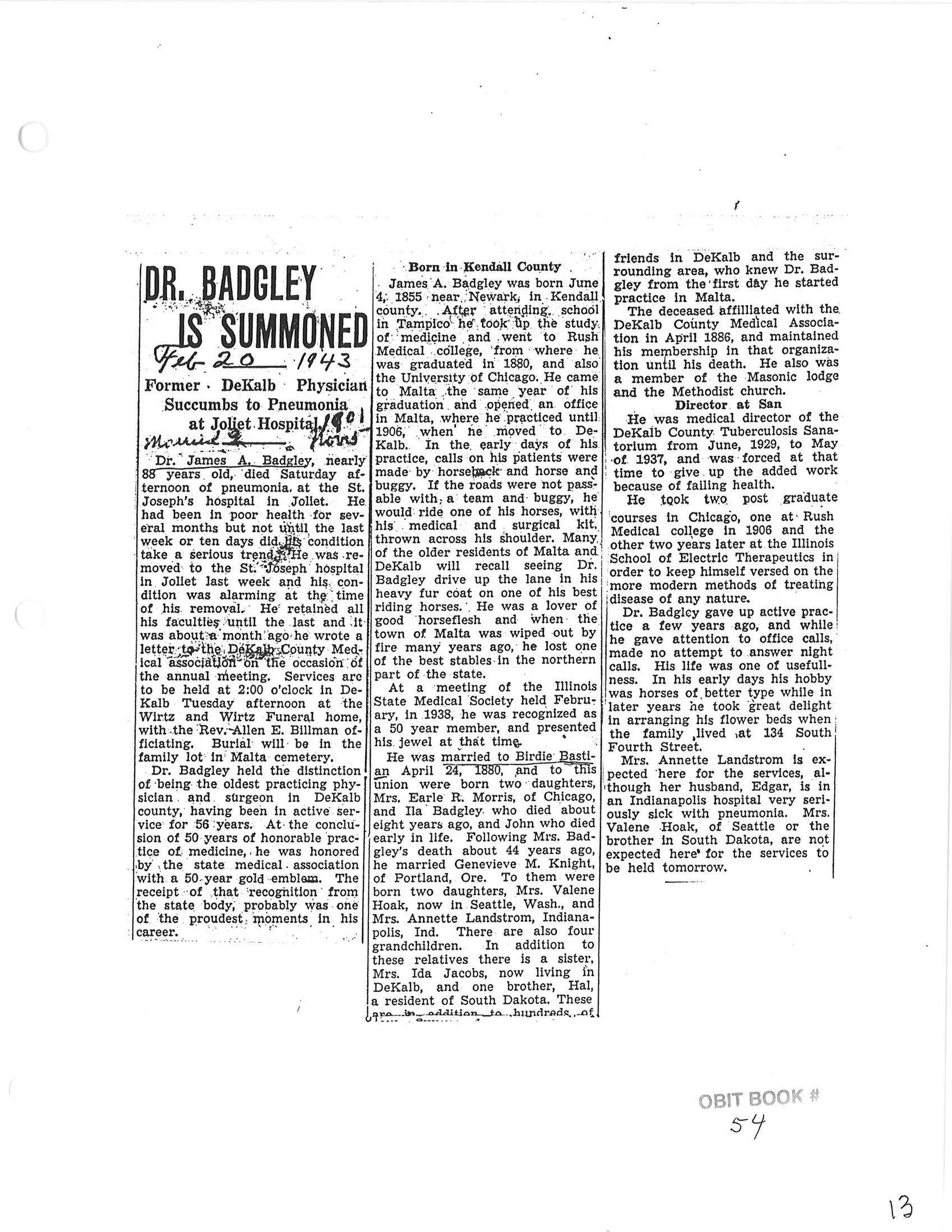 DOB 13 July 1889