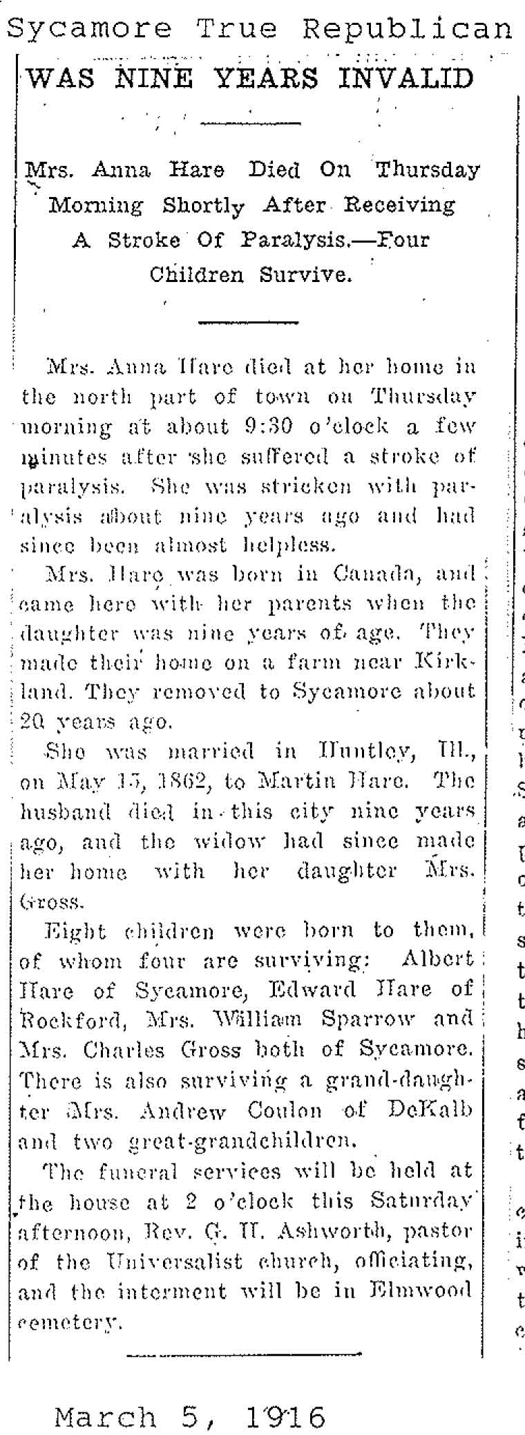 Birth - 1 March 1885