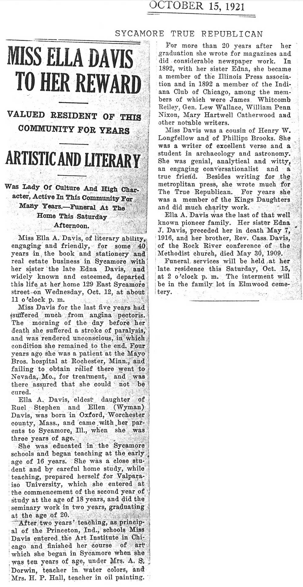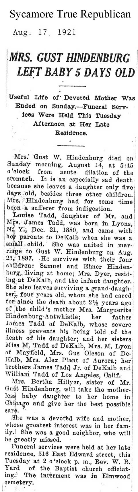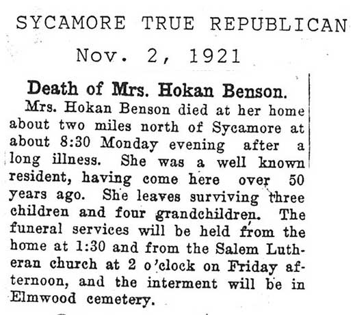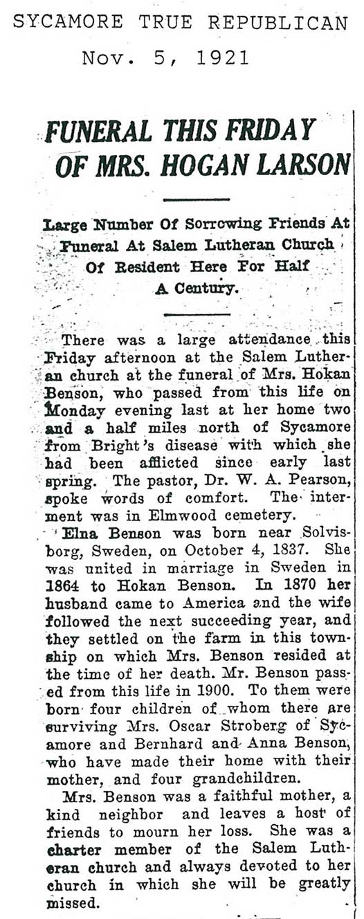 obit heading says Mrs. Hogan Larson