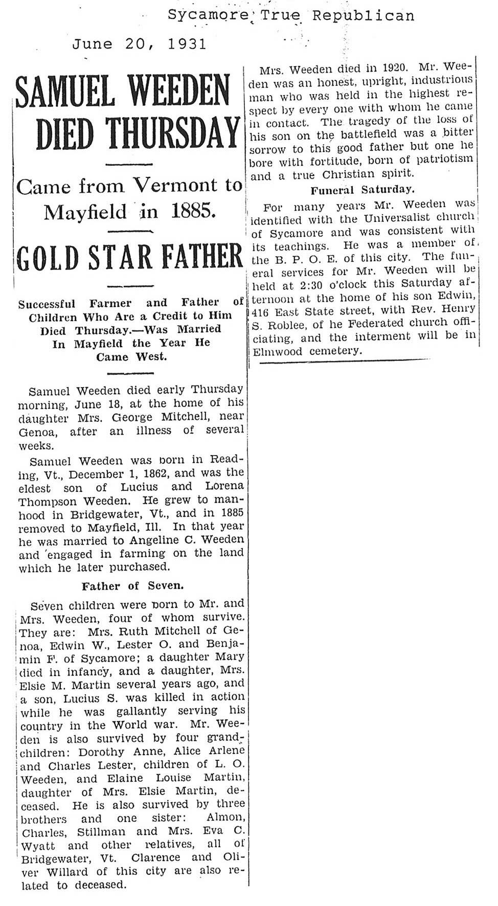 DOB 17 June 1889