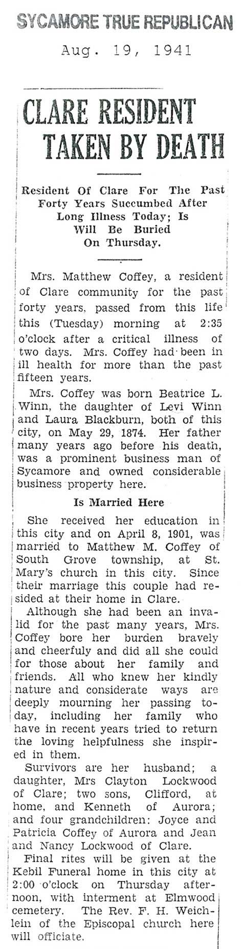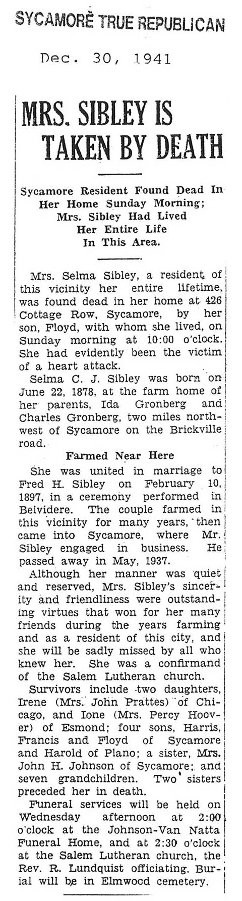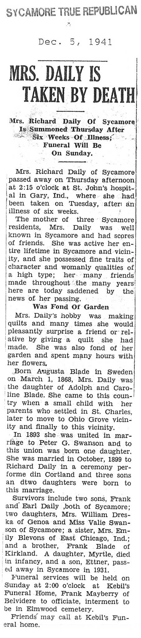 born 1888 husband Charles buried in Mt. Carmel