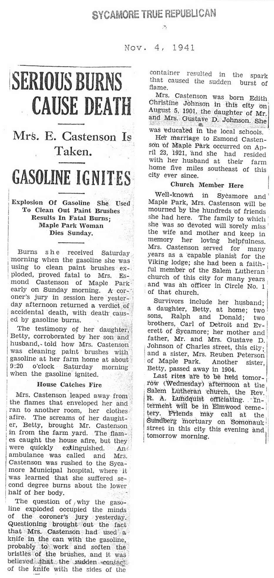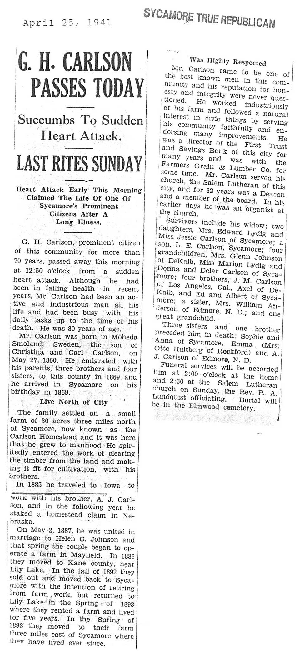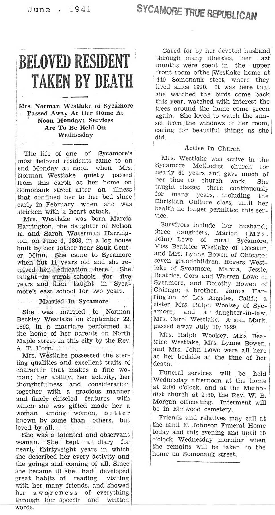 born 1888 husband Charles buried in Mt. Carmel