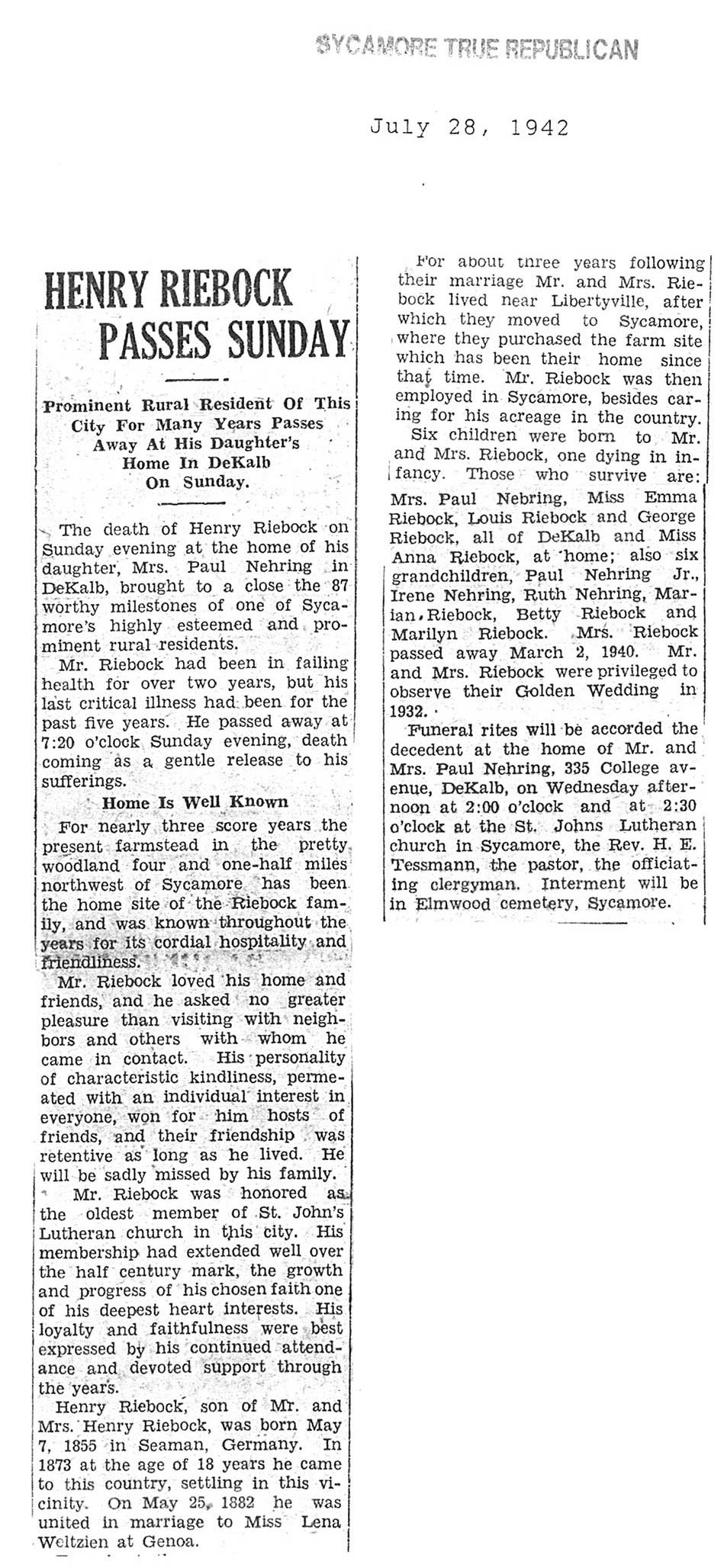 DOB 13 July 1882