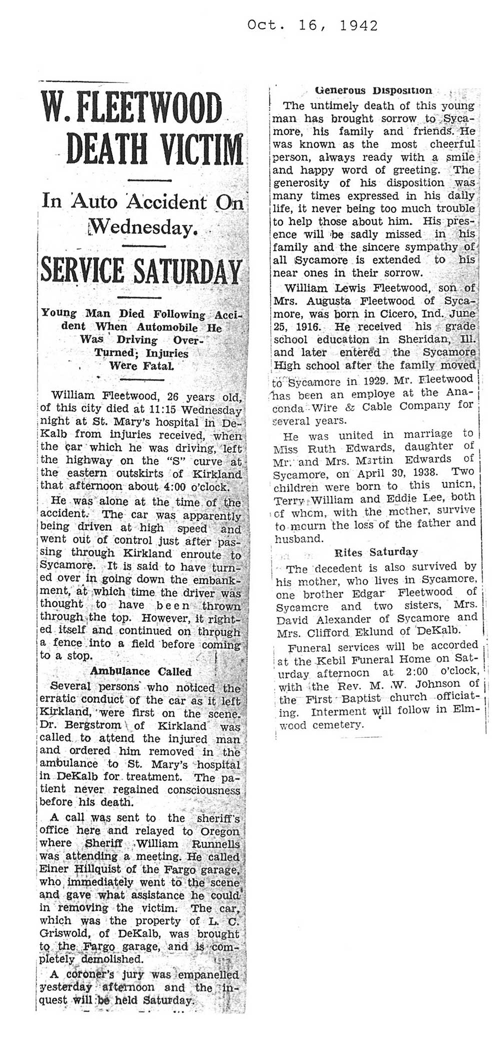 DOB 25 June 1916