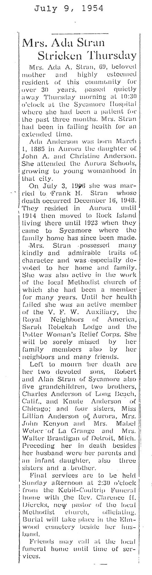 Obit has 2 names Fred & Ray Strock