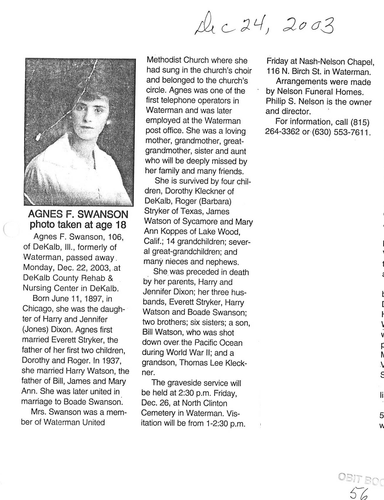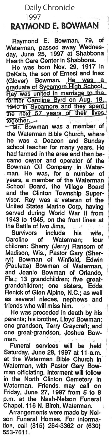 Home » Viewing all obituaries located at "Clinton Township Cemetery (North Clinton, Waterman Cemetery)" (488 matches)