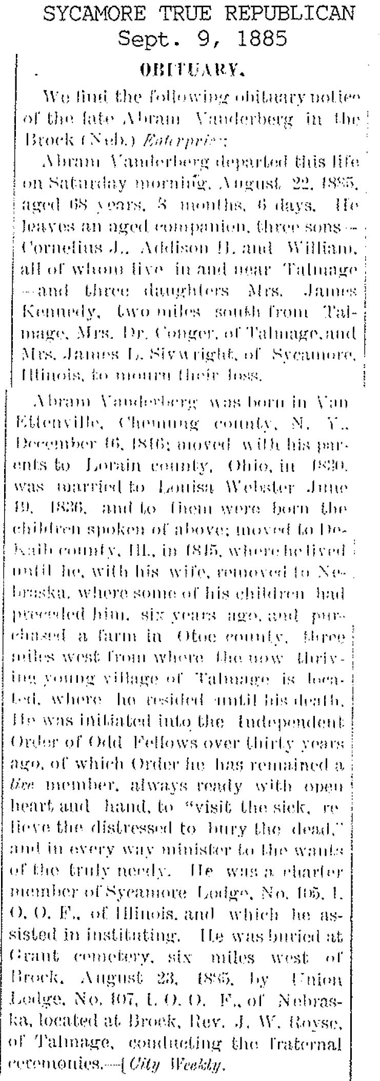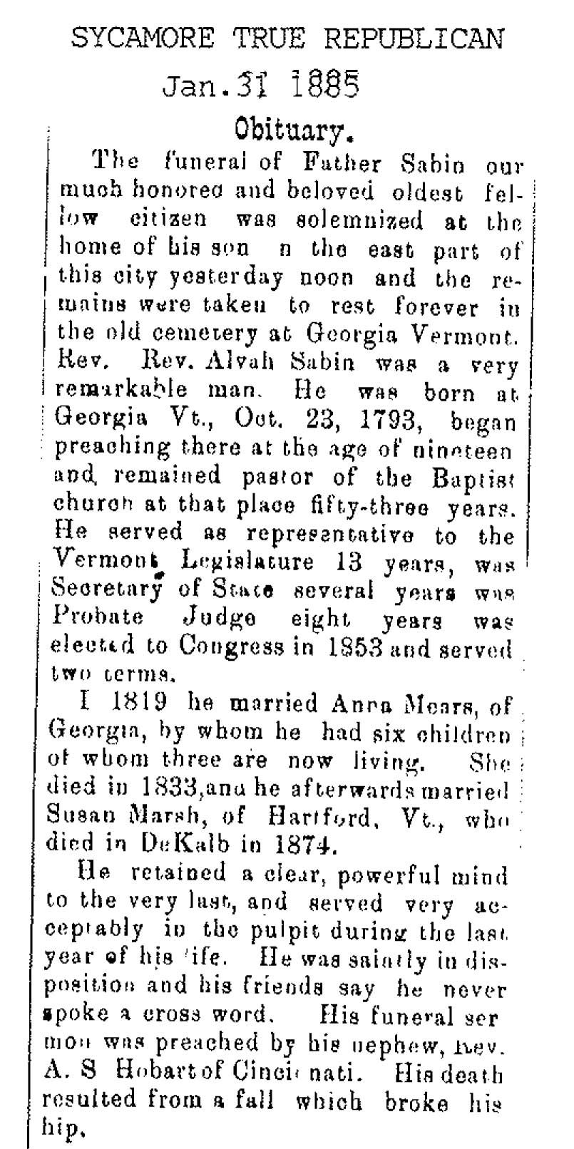 No date of birth Buried in Sycamore, IL
