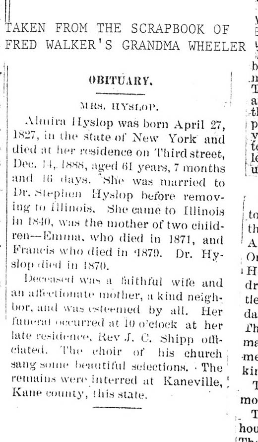 Maiden name - Burt Buried in Kaneville Cemetery, Kaneville, IL