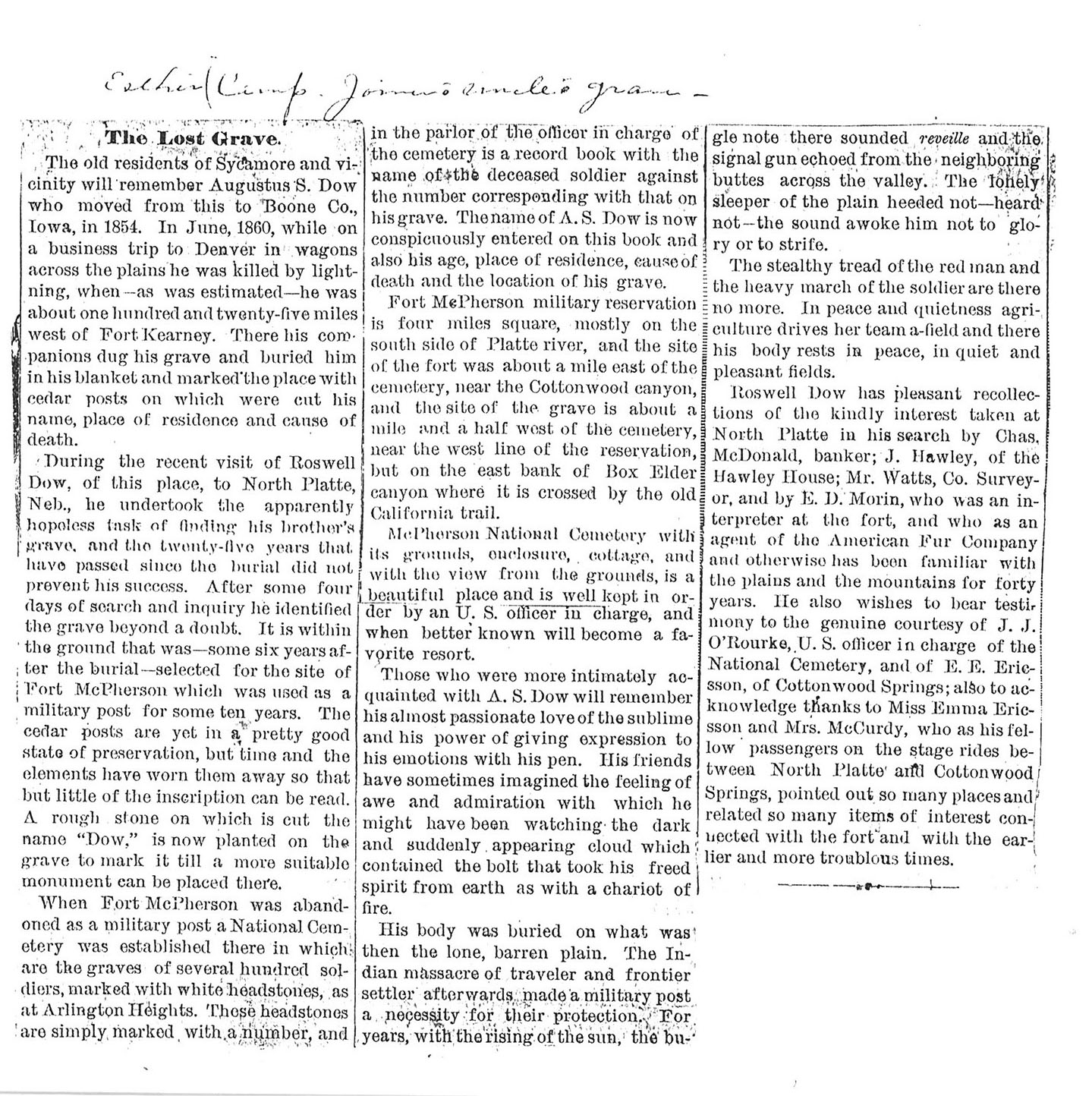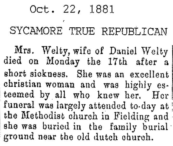 Buried in Ellsworth, IL cemetery