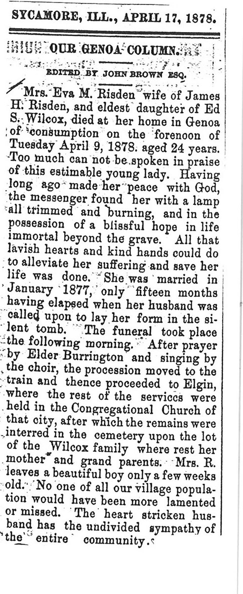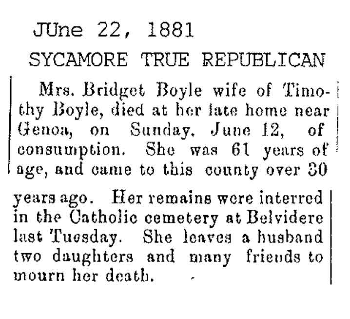 No date of birth Buried in St. James Cemetery, Belvidere, IL