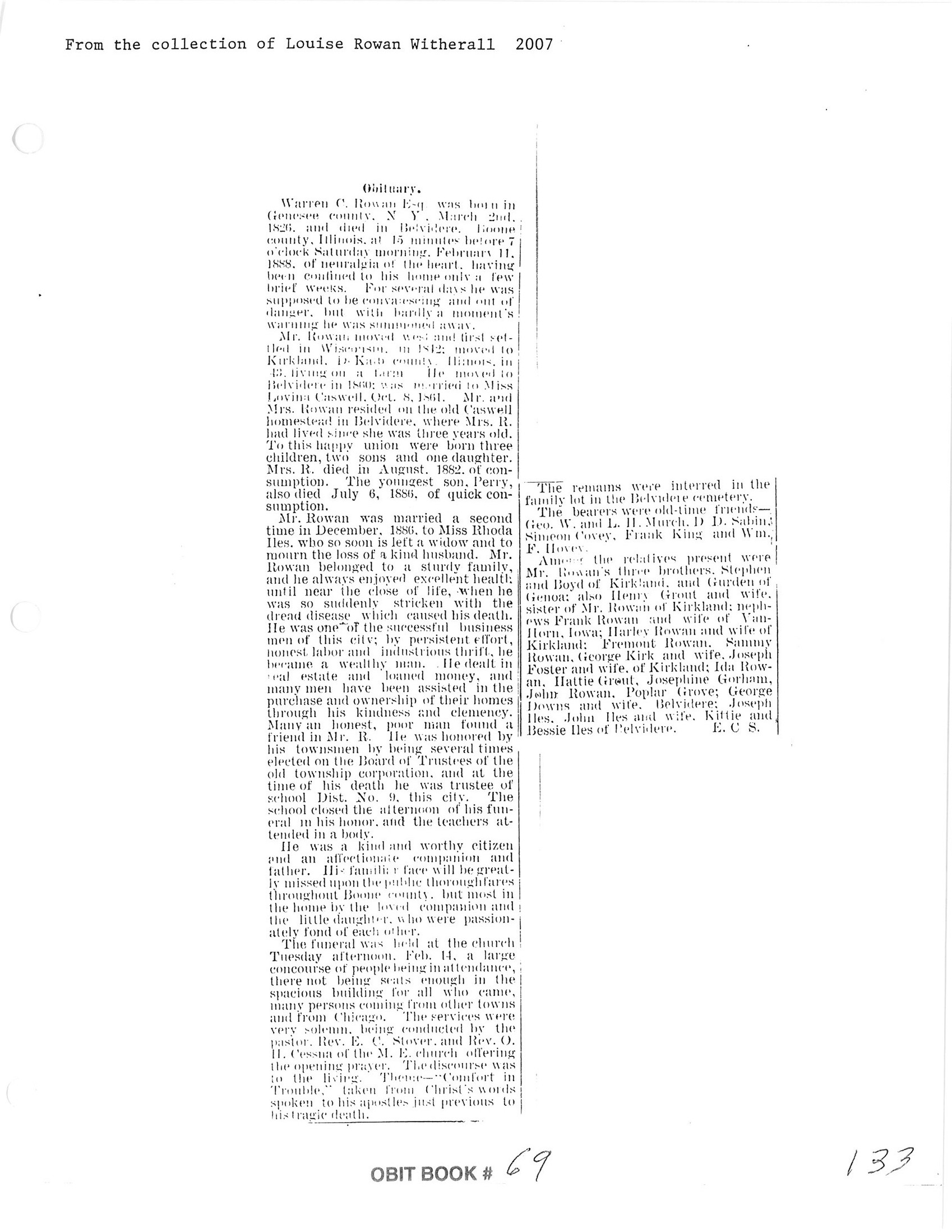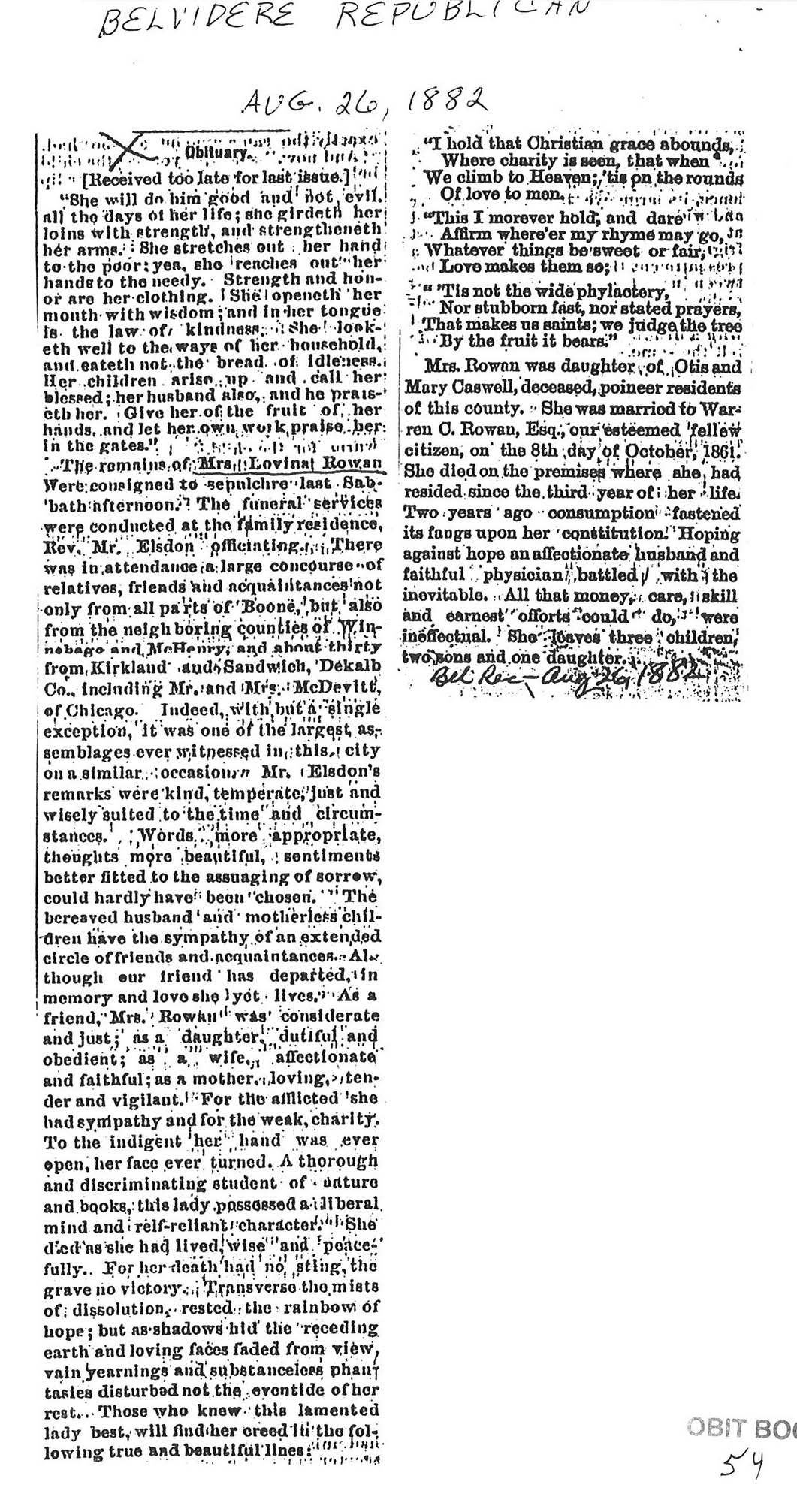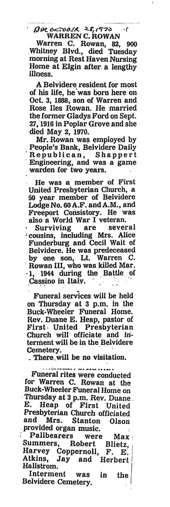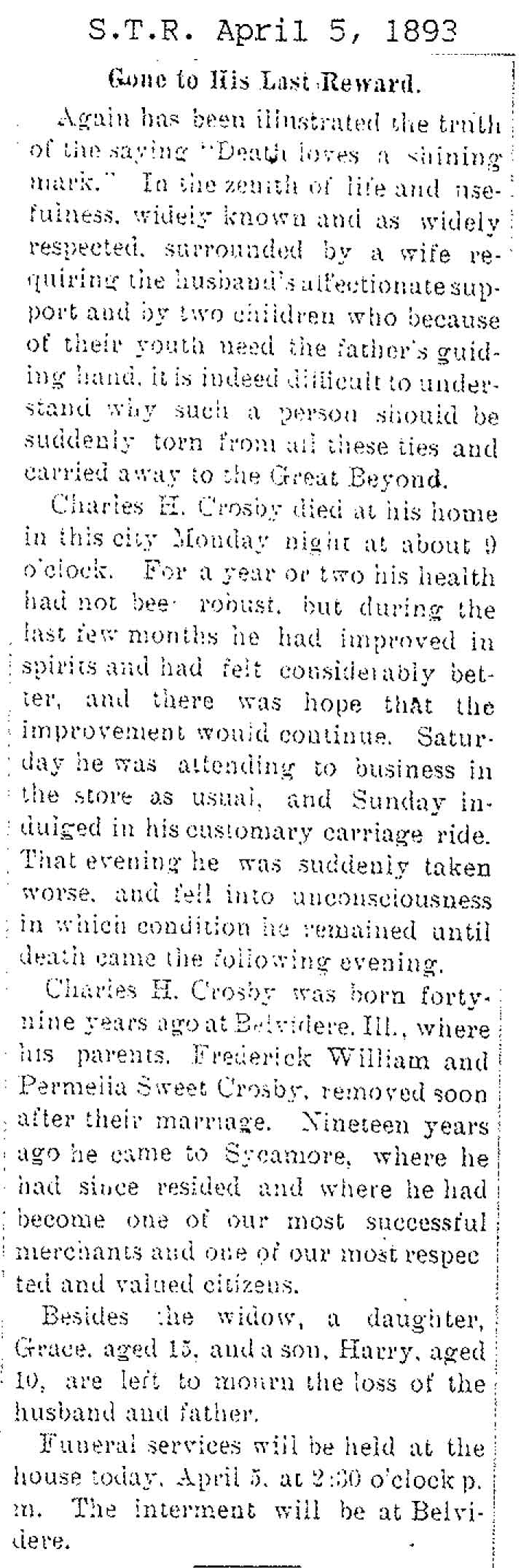 Buried in Belvidere Cemetery, Belvidere, IL