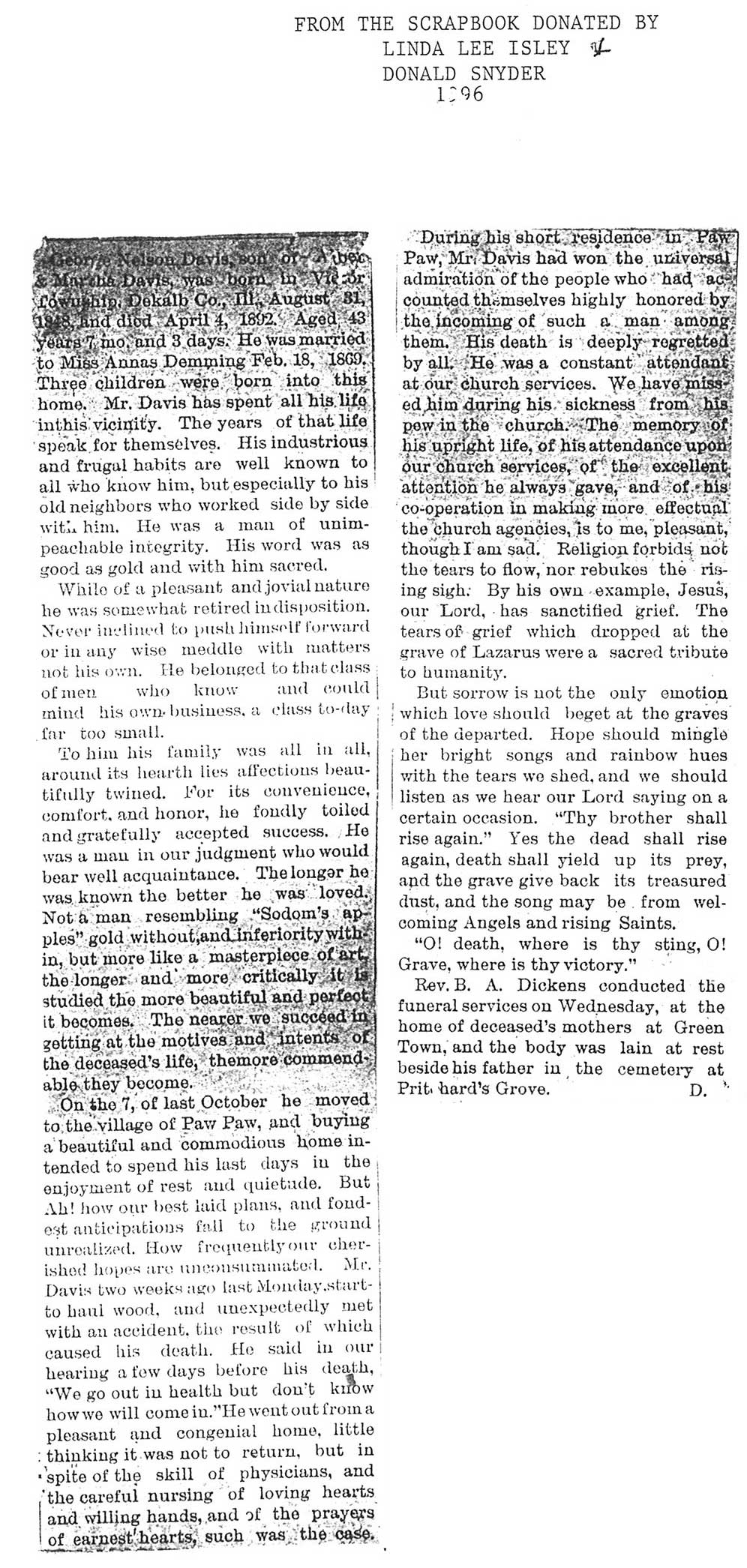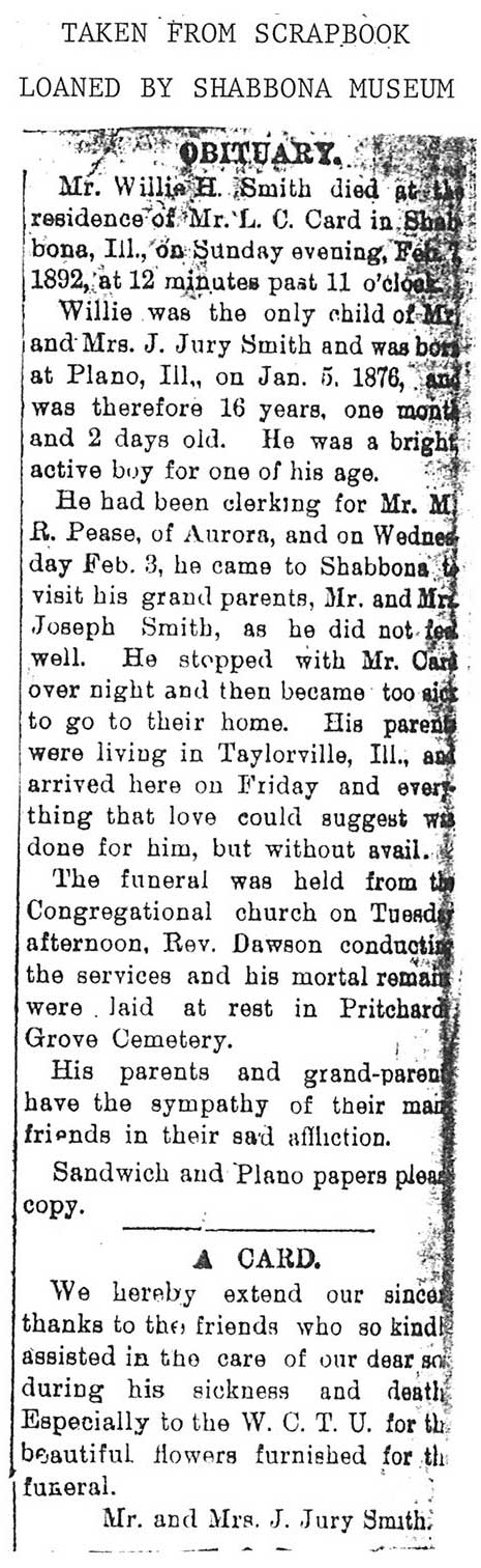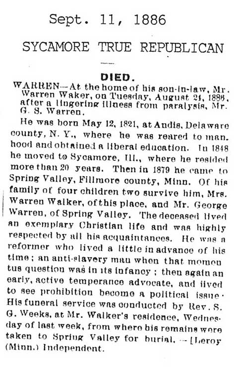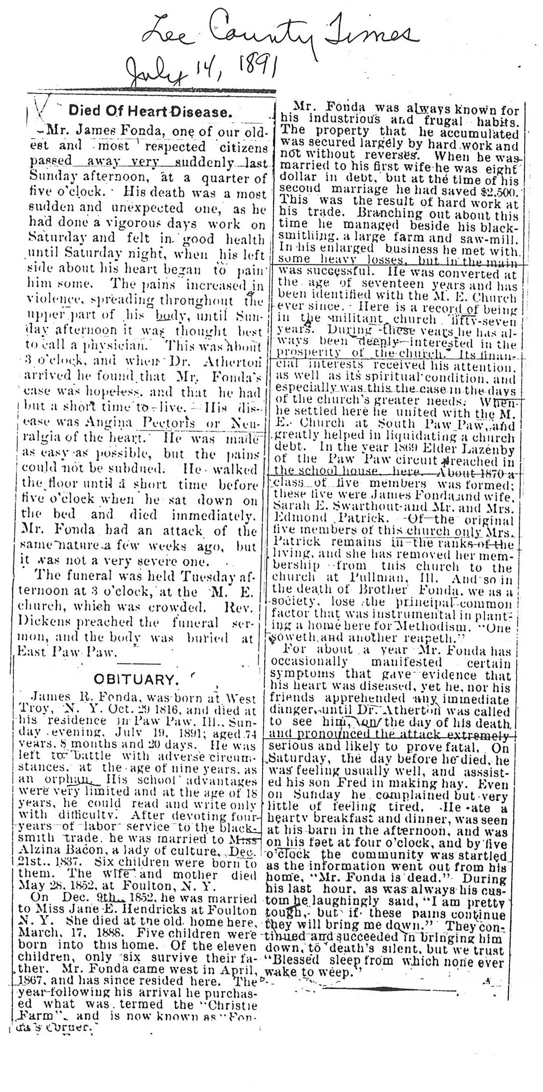 Buried in East Cemetery, Paw Paw, IL