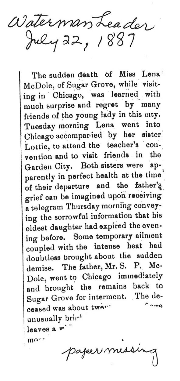 No date of birth Buried in St. Charles, IL