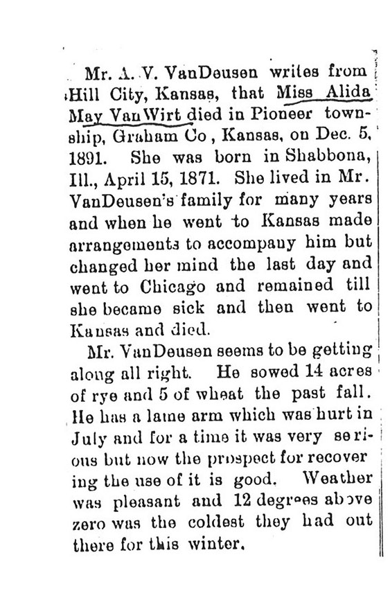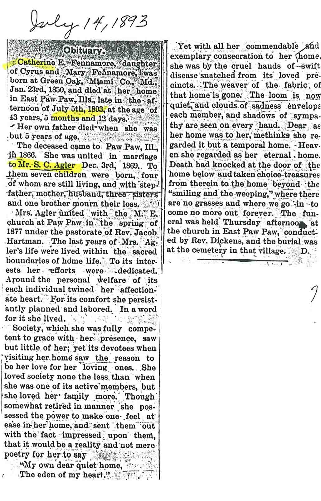Maiden name - Fennamore Buried in Wyoming Cemetery - Paw Paw, IL