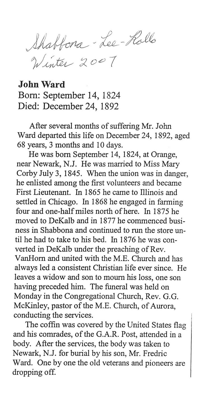 No date of birth Buried in Maple Park, IL
