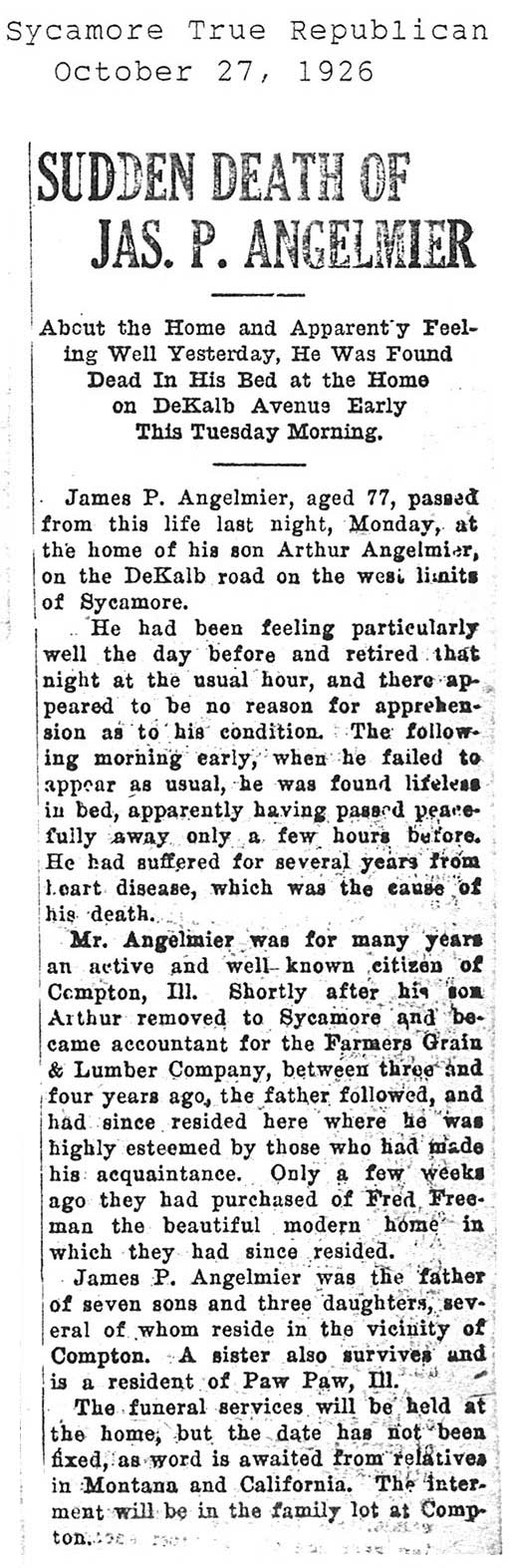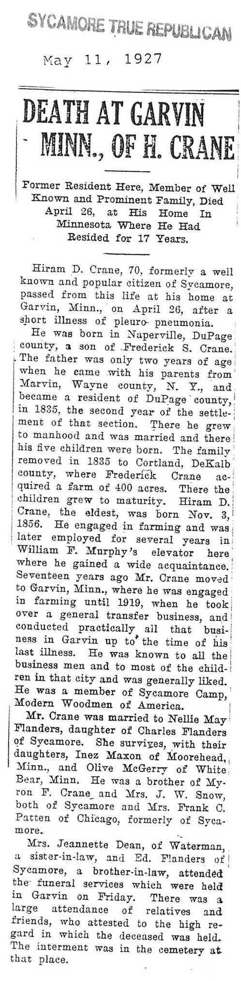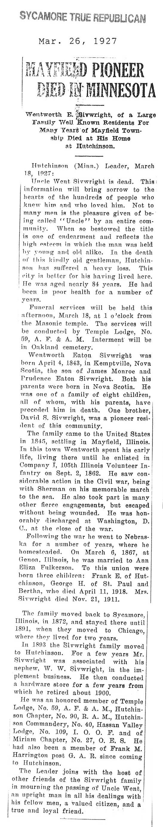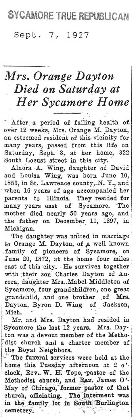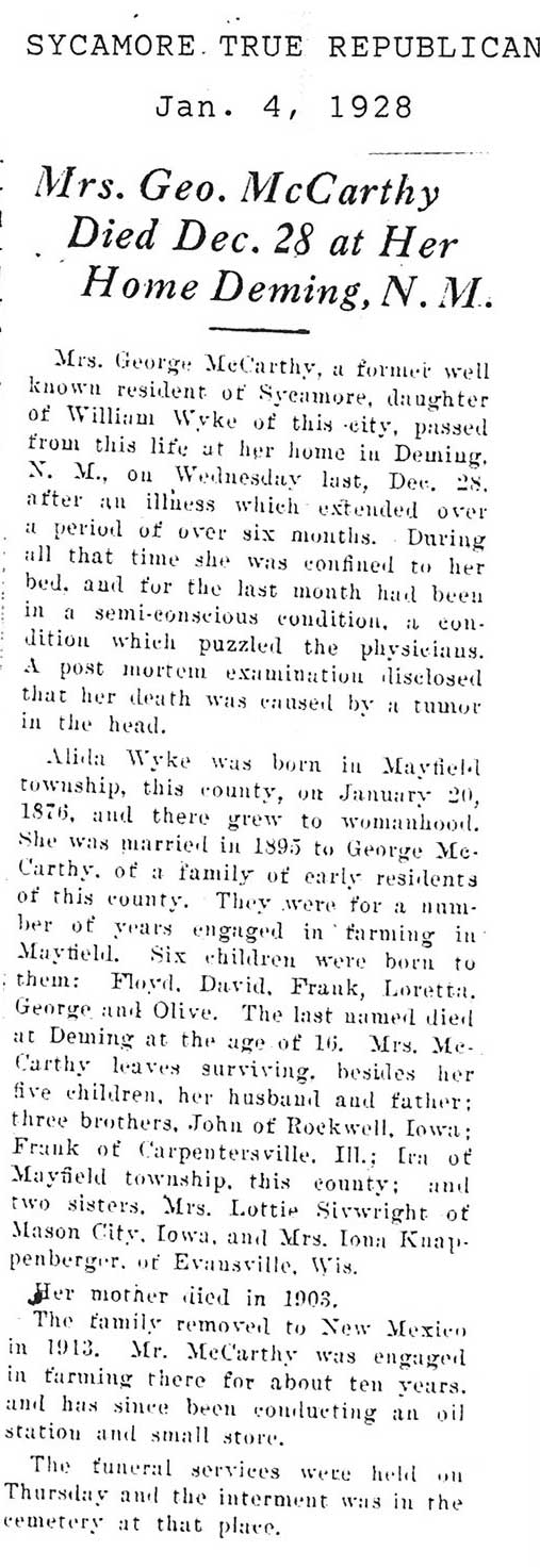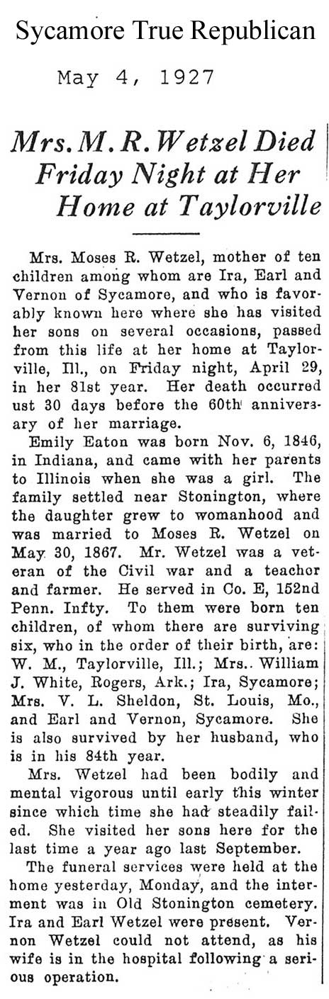 Buried in Wyoming Cemetery - Paw Paw, IL
