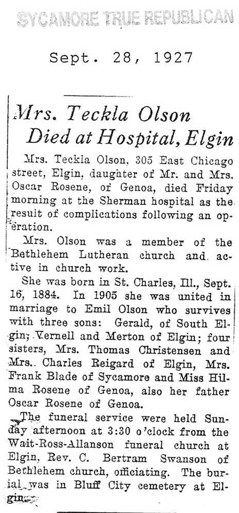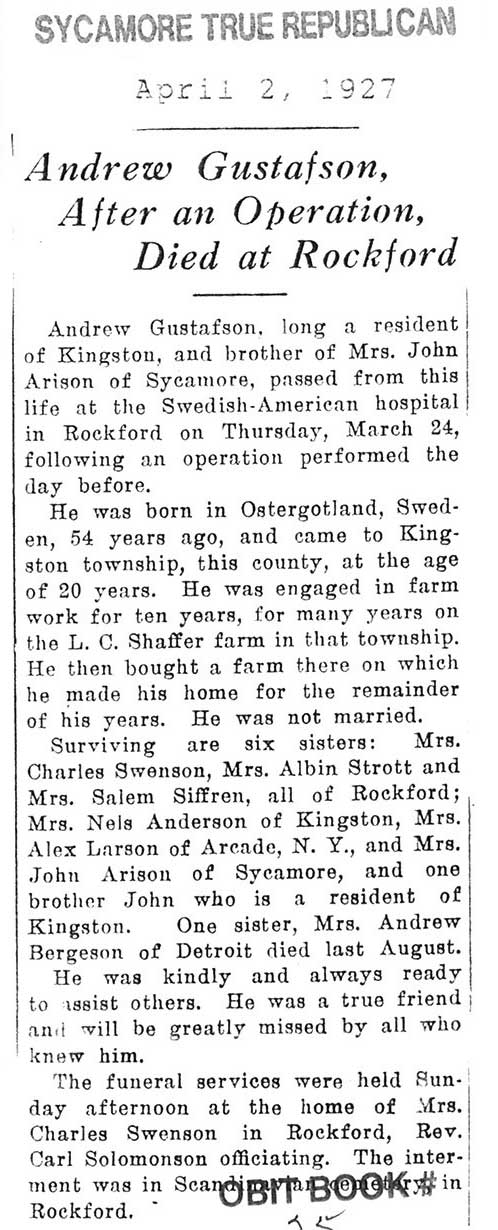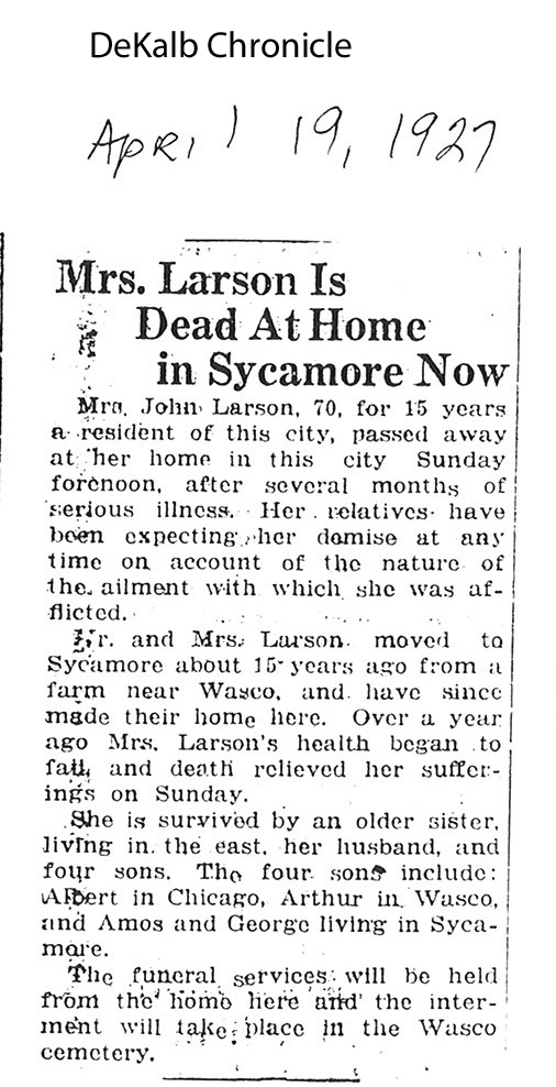 Buried in Scandanavian Cemetery-Rockford, IL