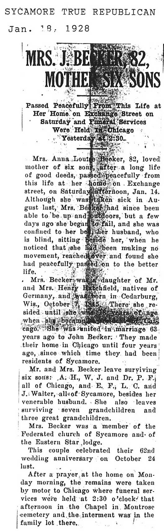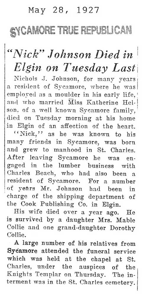 Buried in Bluff City Cemetery - Elgin IL