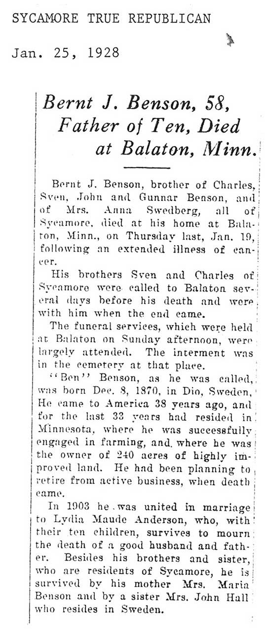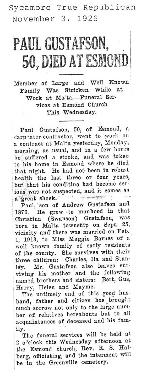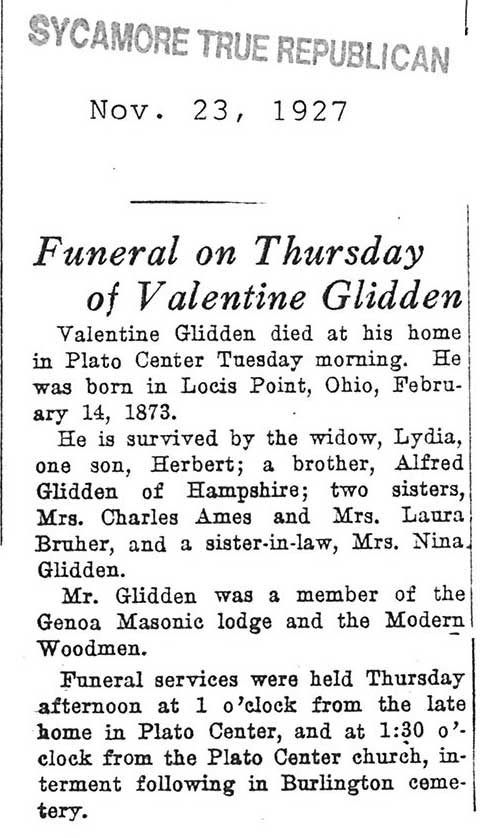 Buried in Paw Paw, IL Cemetery