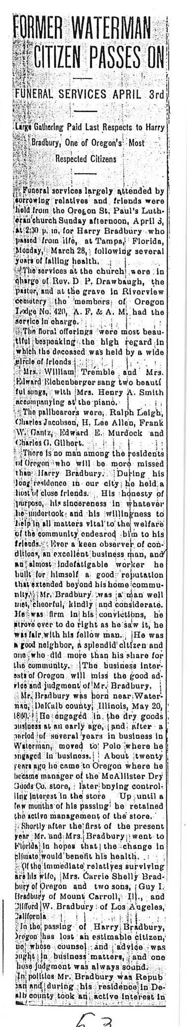 Buried in Riverview Cemetery - Oregon, IL