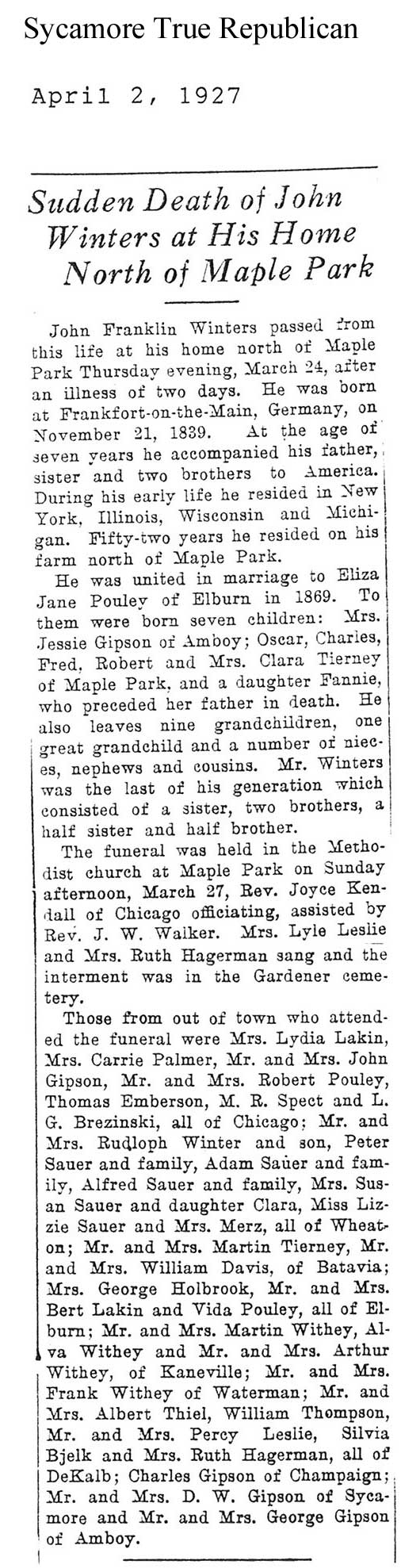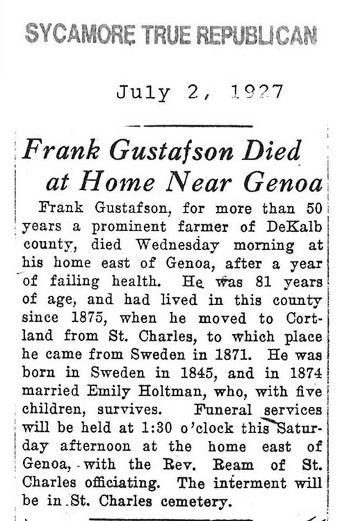Buried in Gardner Cemetery - Maple Park, IL