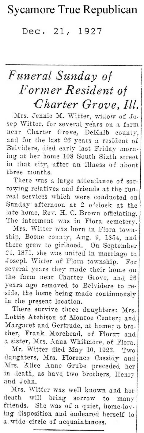 Buried in Flora Cemetery, Boone County, IL