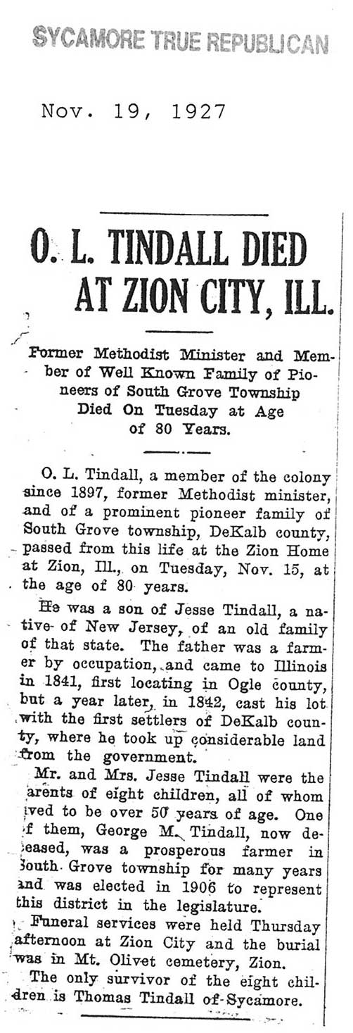 Buried in Mt. Olivet, Zion, IL