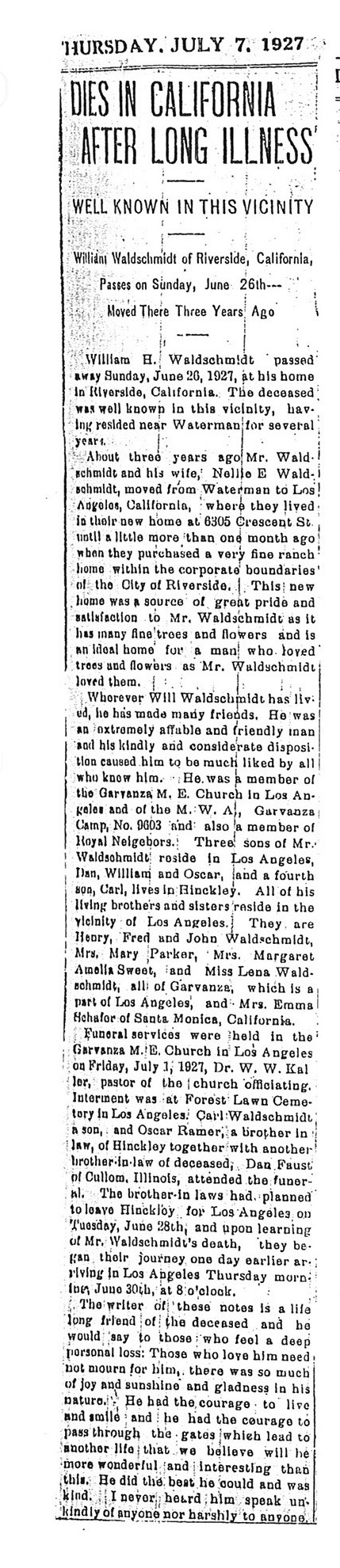 Buried in Bluff City Cemetery - Elgin, IL