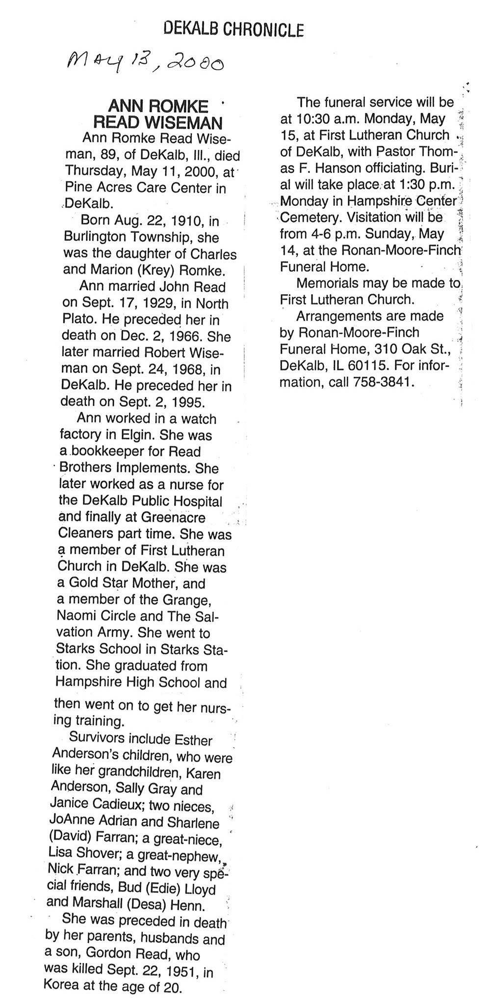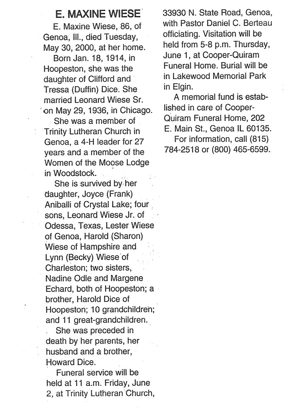 Burial: Trinity Memory Gardens - Rochelle, IL