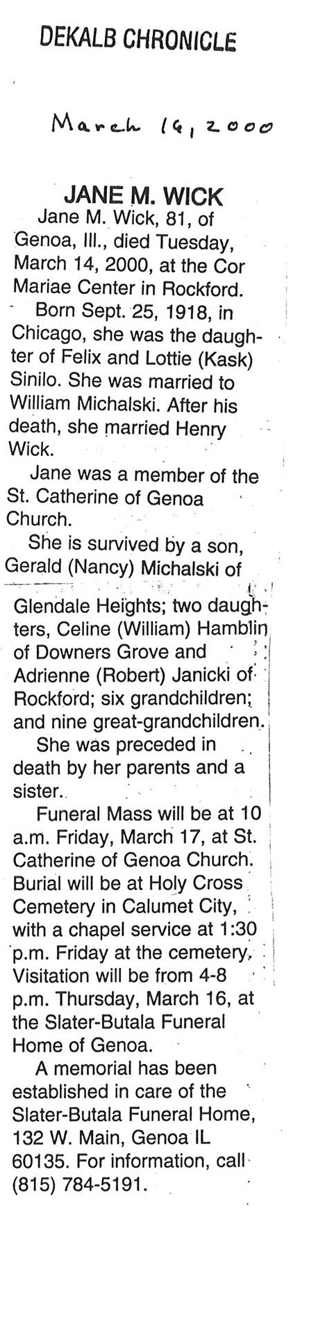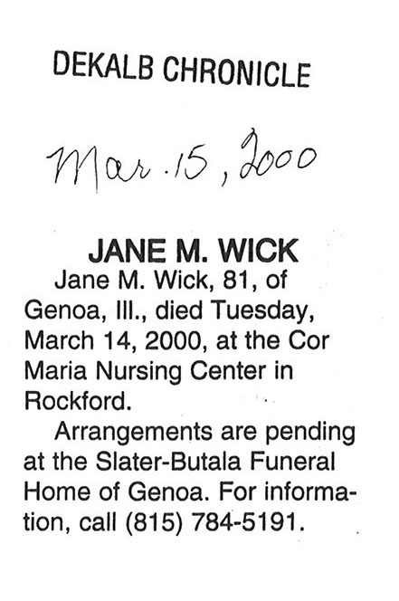 Burial: St. John Catholic Cemetery - Somonauk, IL