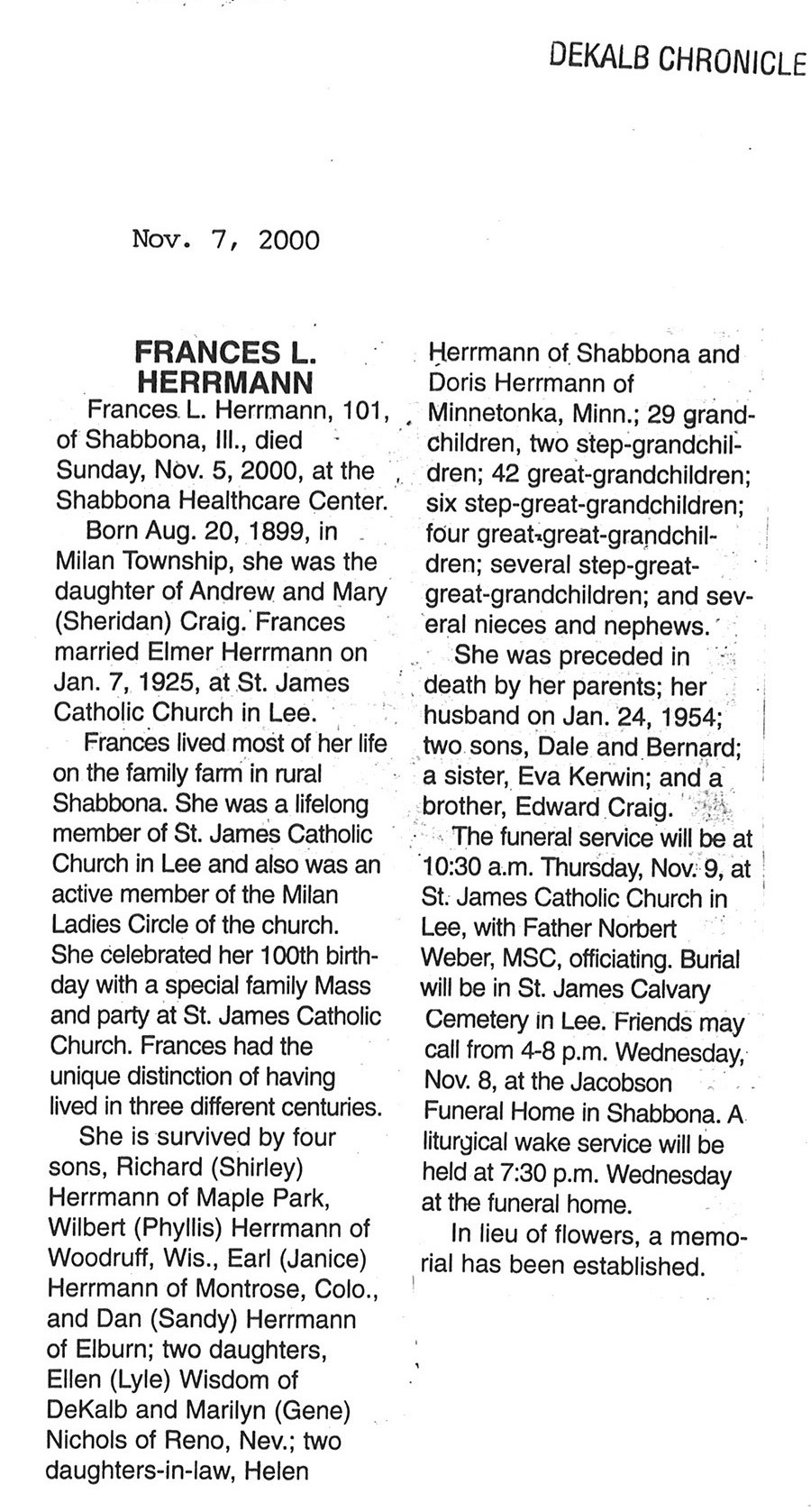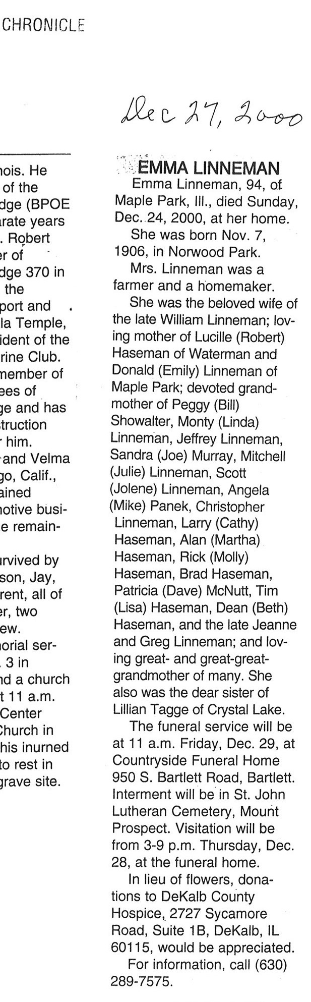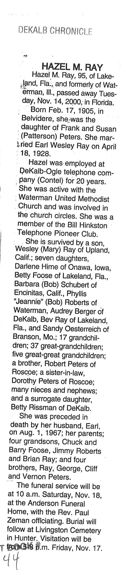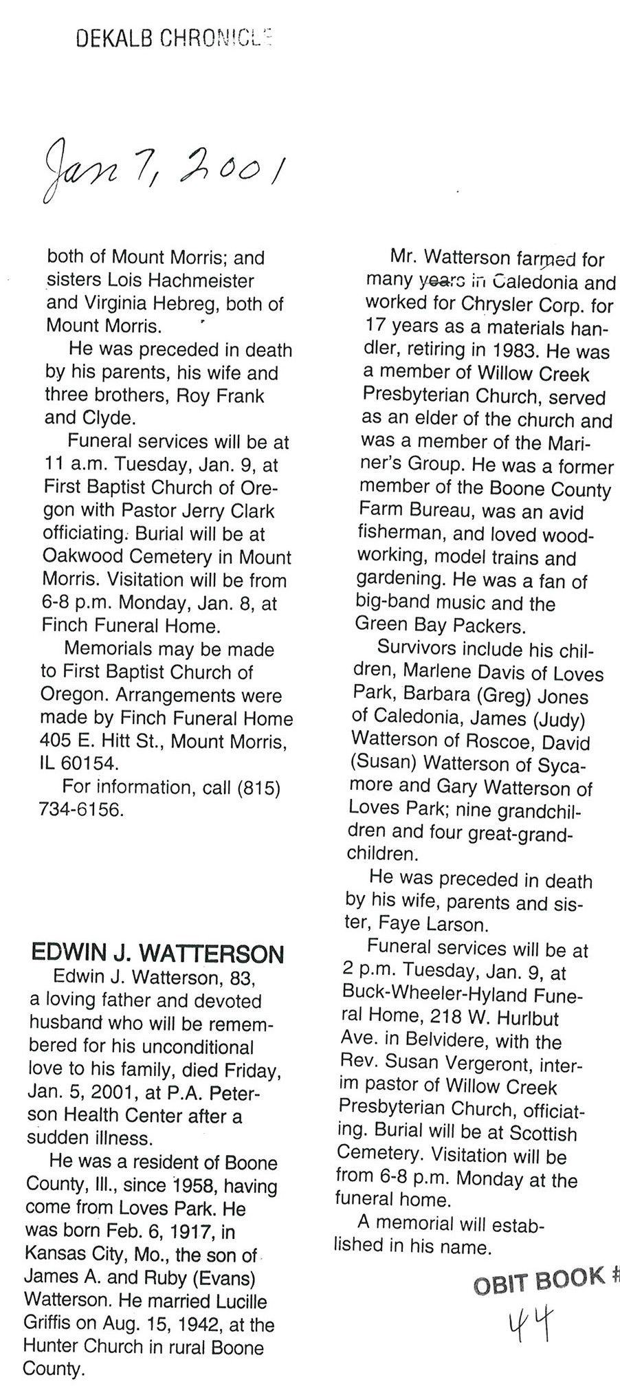 DOB July 16, 1913 in Waterman
