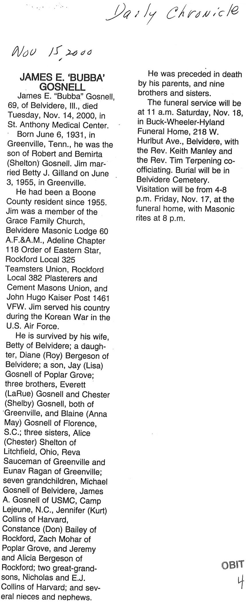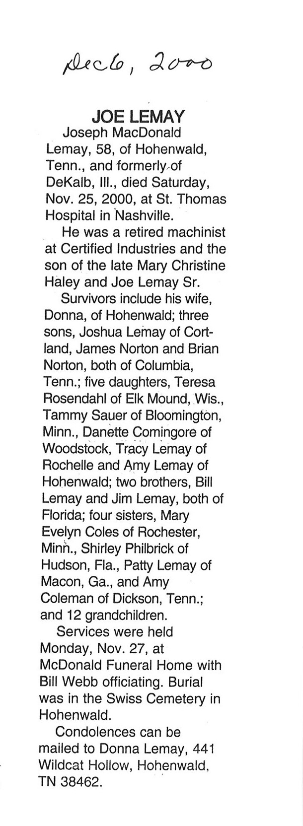 Joiner History Room Obituary DB