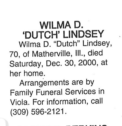 Wilma ". Lindsey