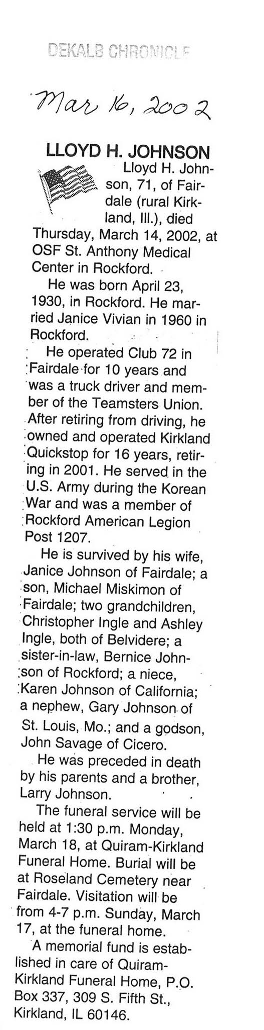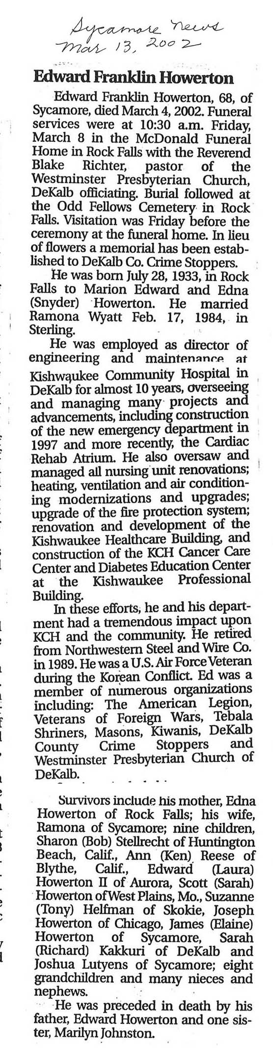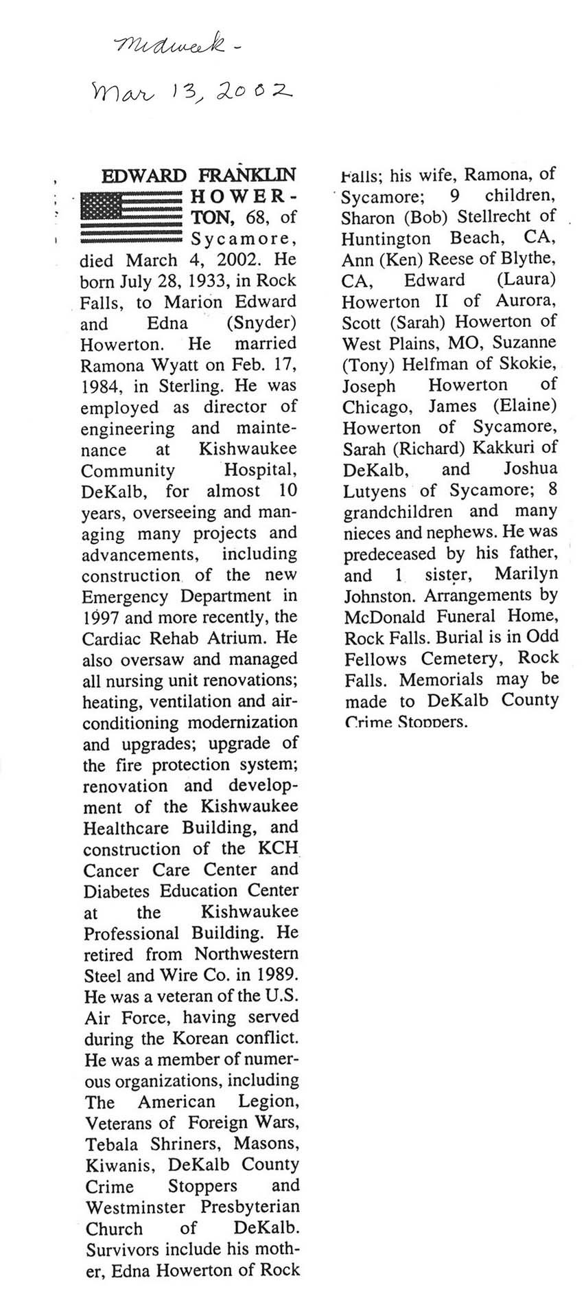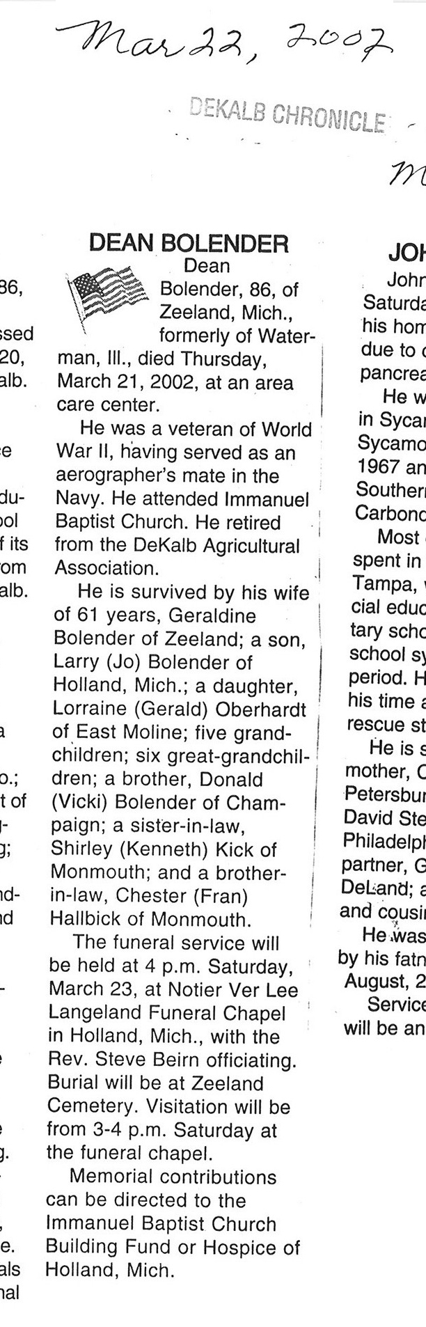 DOB March 8, 1913