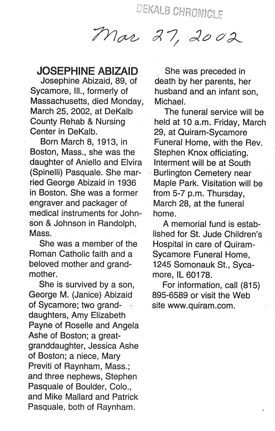 DOB August 13, 1927