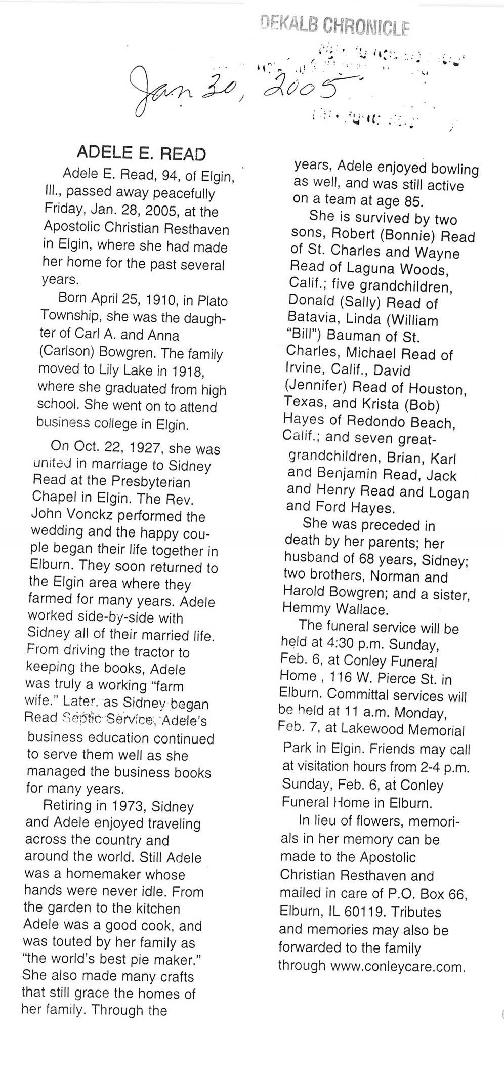 DOB January 31, 1909